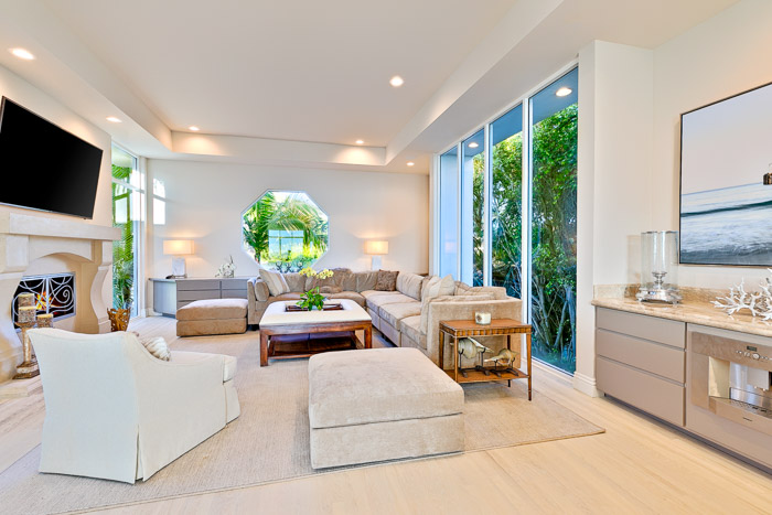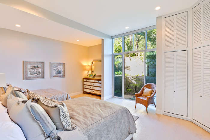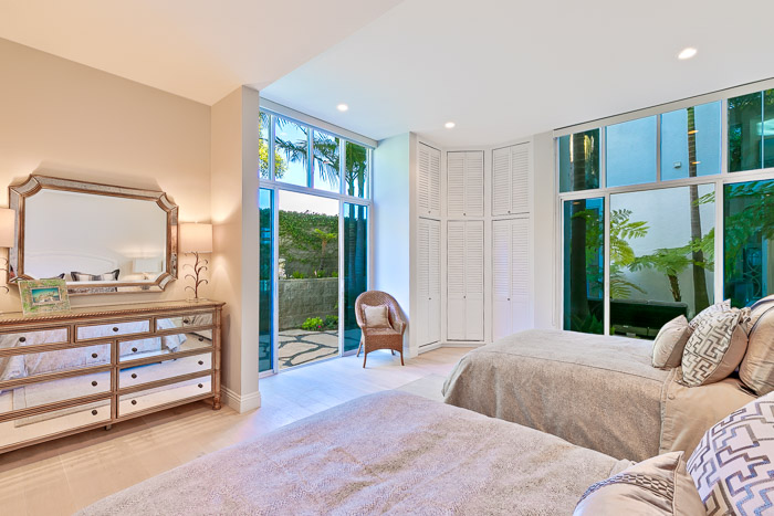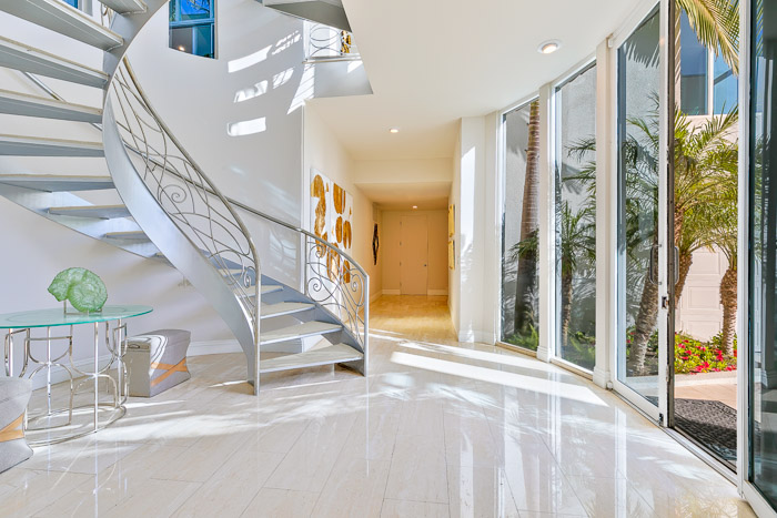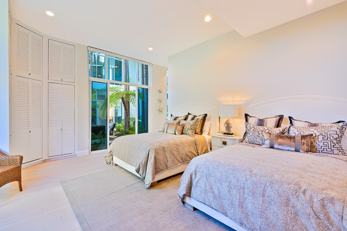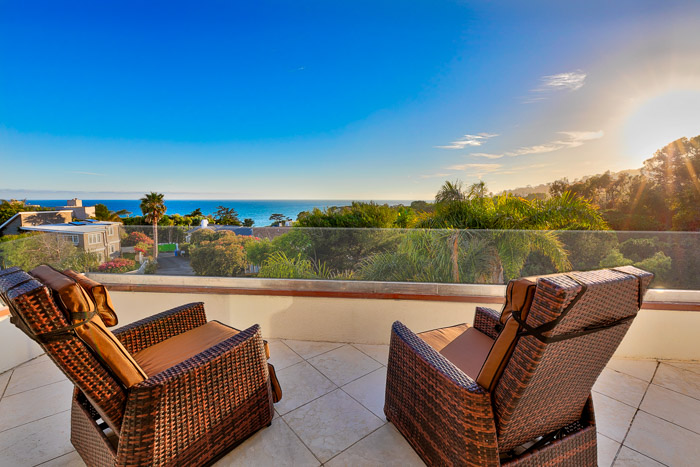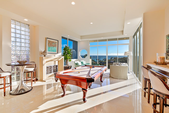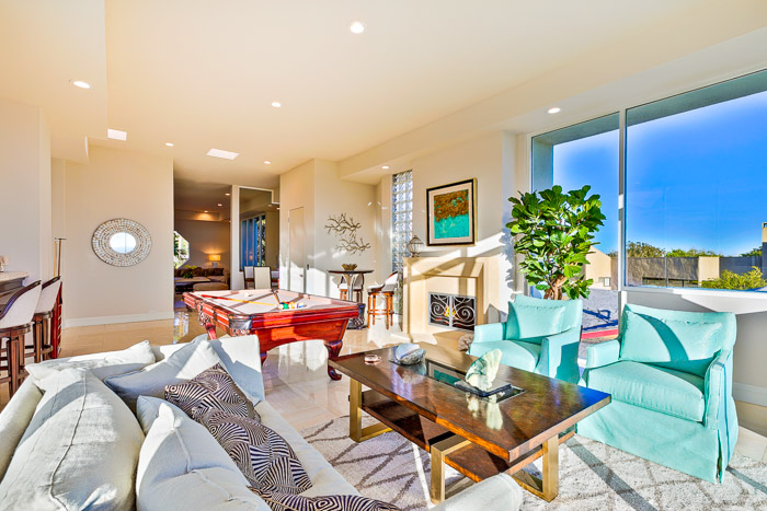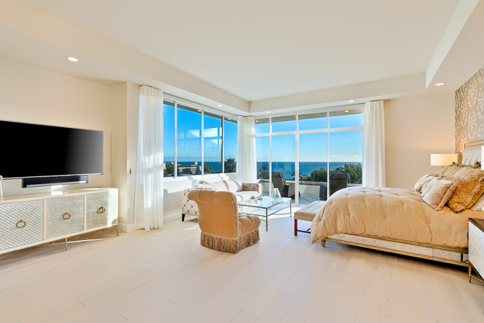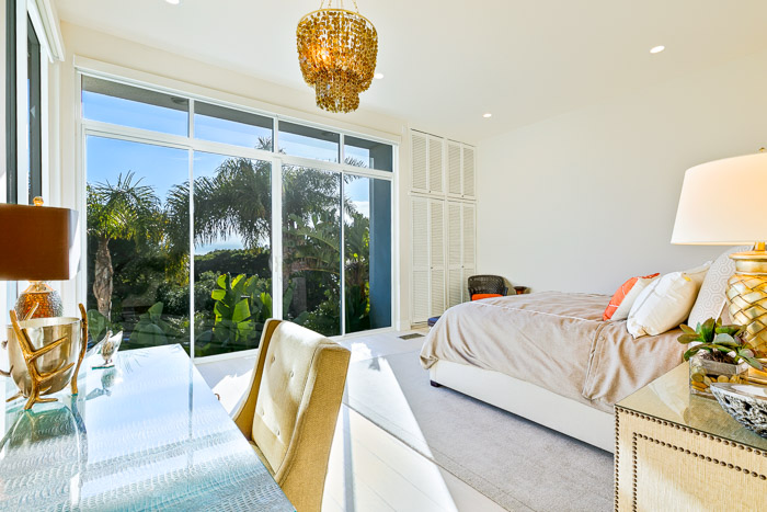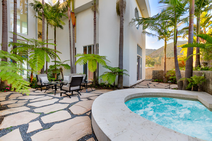 This contemporary three-story elegant architectural home with elevator, located on Broad Beach, complete with four bedrooms and six bathrooms, is an entertainer’s dream. A light filled entry with striking three-story wall of glass, a spiral staircase and elevator welcome you in. 7,200 square feet of luxury awaits you. Think high-end designer boutique hotel meets Malibu beach. Ocean views from most rooms, entertainment suite complete with billiard and game table, TV room, 8 person screening room with a private kitchenette provide the perfect destination for relaxation and entertainment. The opulent oversized kitchen is equipped with 2 dishwashers, 2 sub-zero refrigerators, a granite center island, Butler’s pantry, and a gorgeous La Corneu Stove. The bedrooms are of the highest quality with luxury bedding and bath that make you feel like you’re staying in a 5 star resort. Soak in the beautiful sunken Jacuzzi tub in yard, walk the private grounds, and relax in the palm tree filled courtyard. Take the elevator down to the 4 car garage and step outside to the private beach that awaits you. 7200 Sq. Ft
