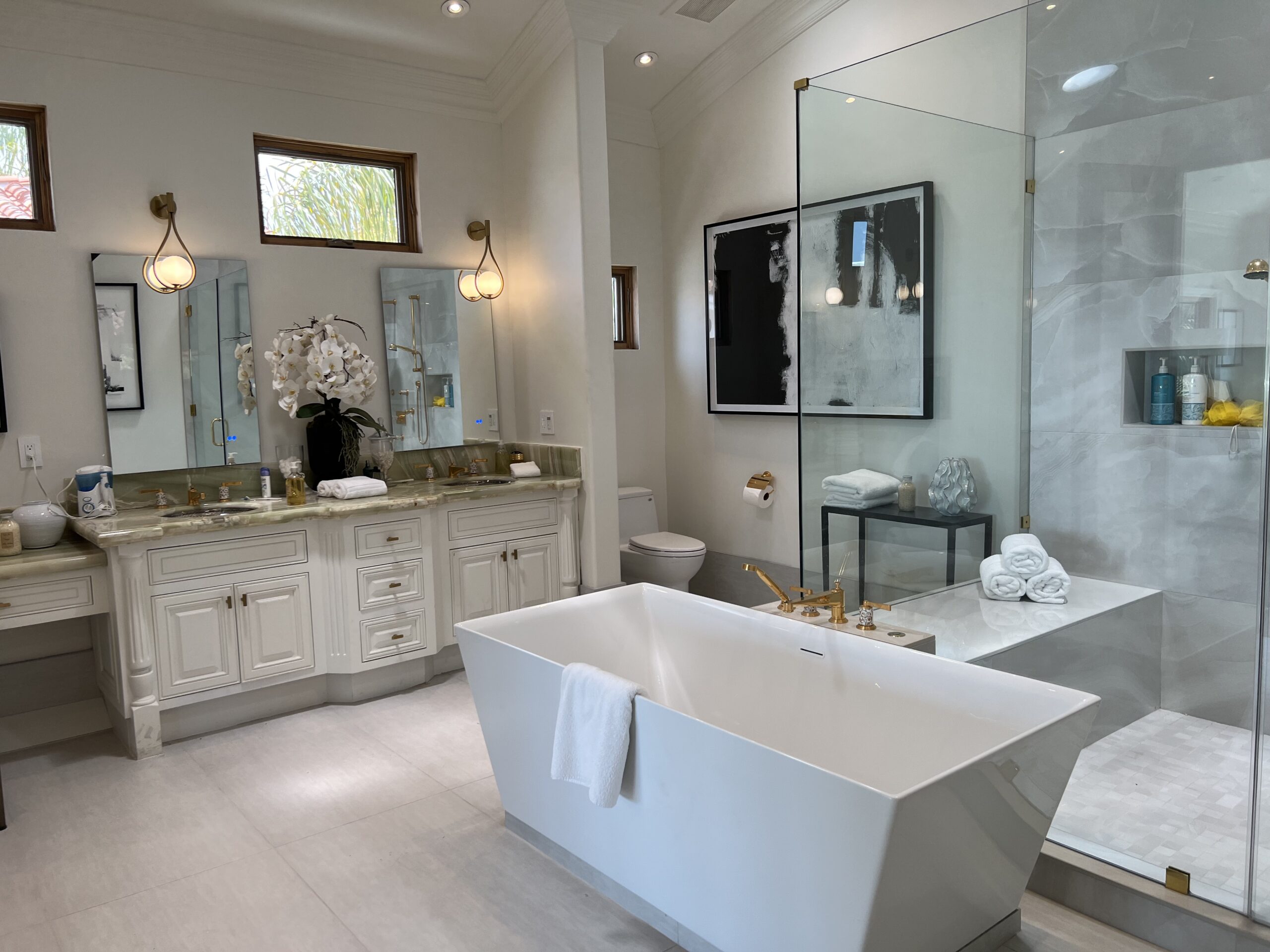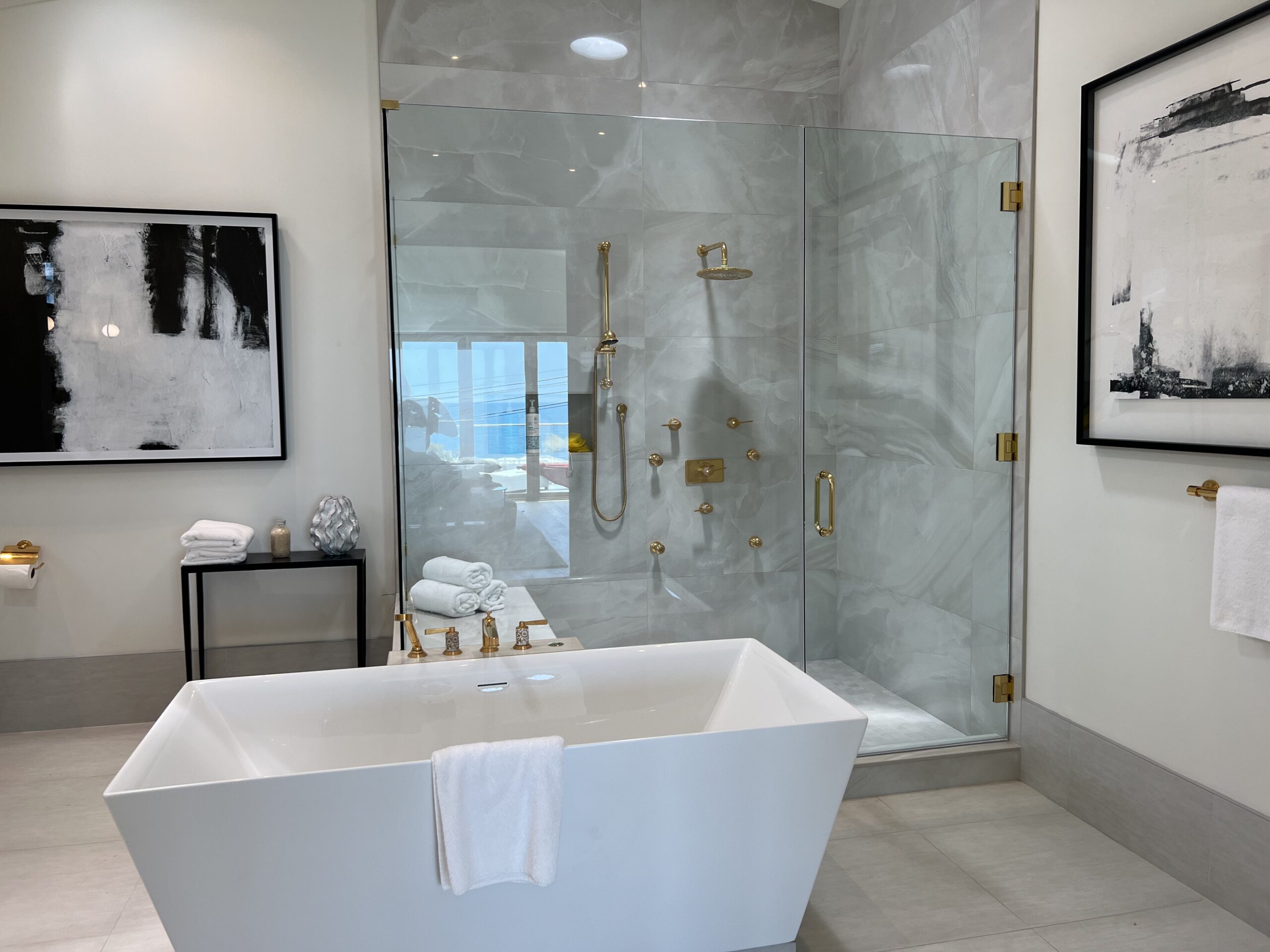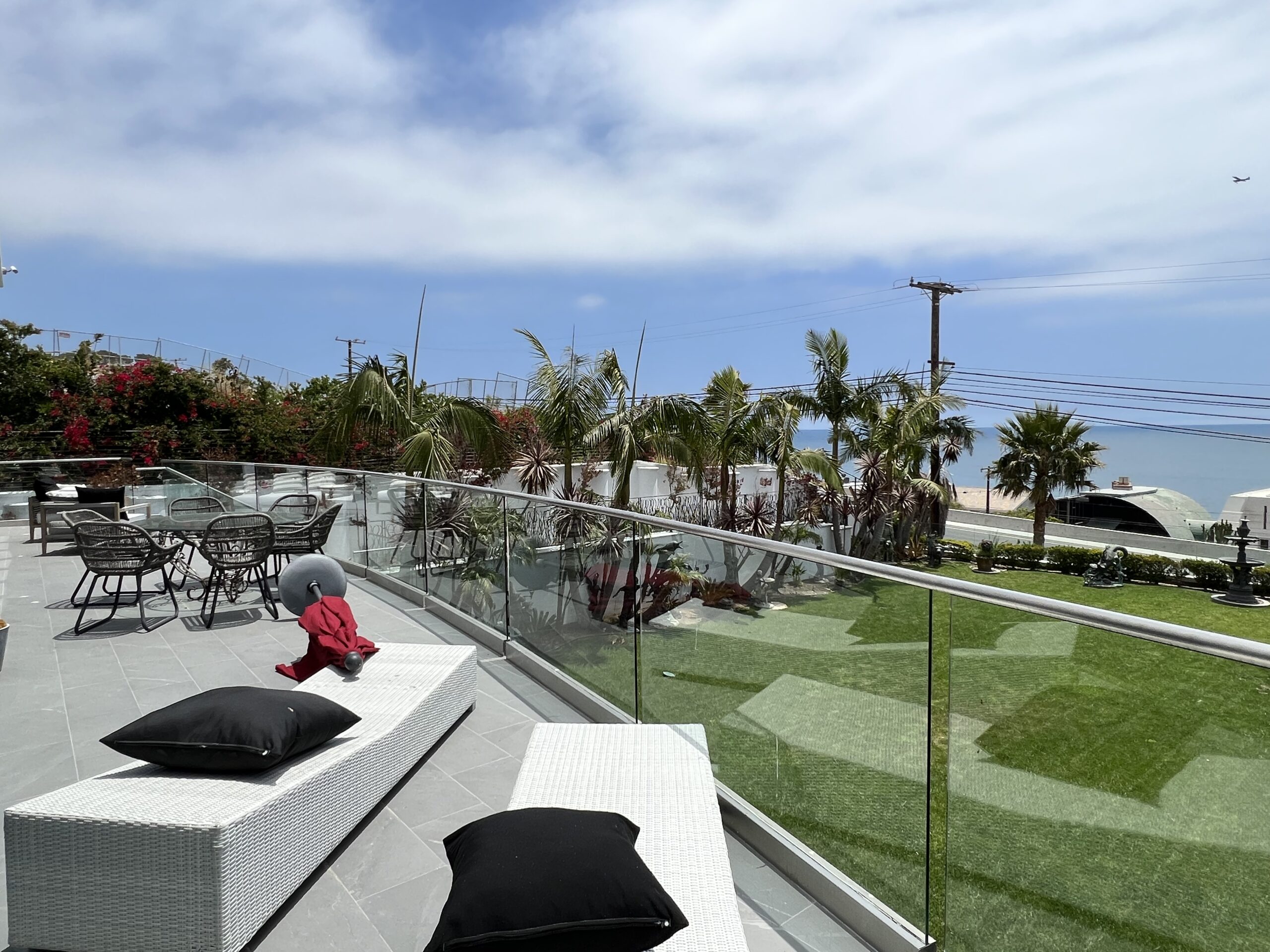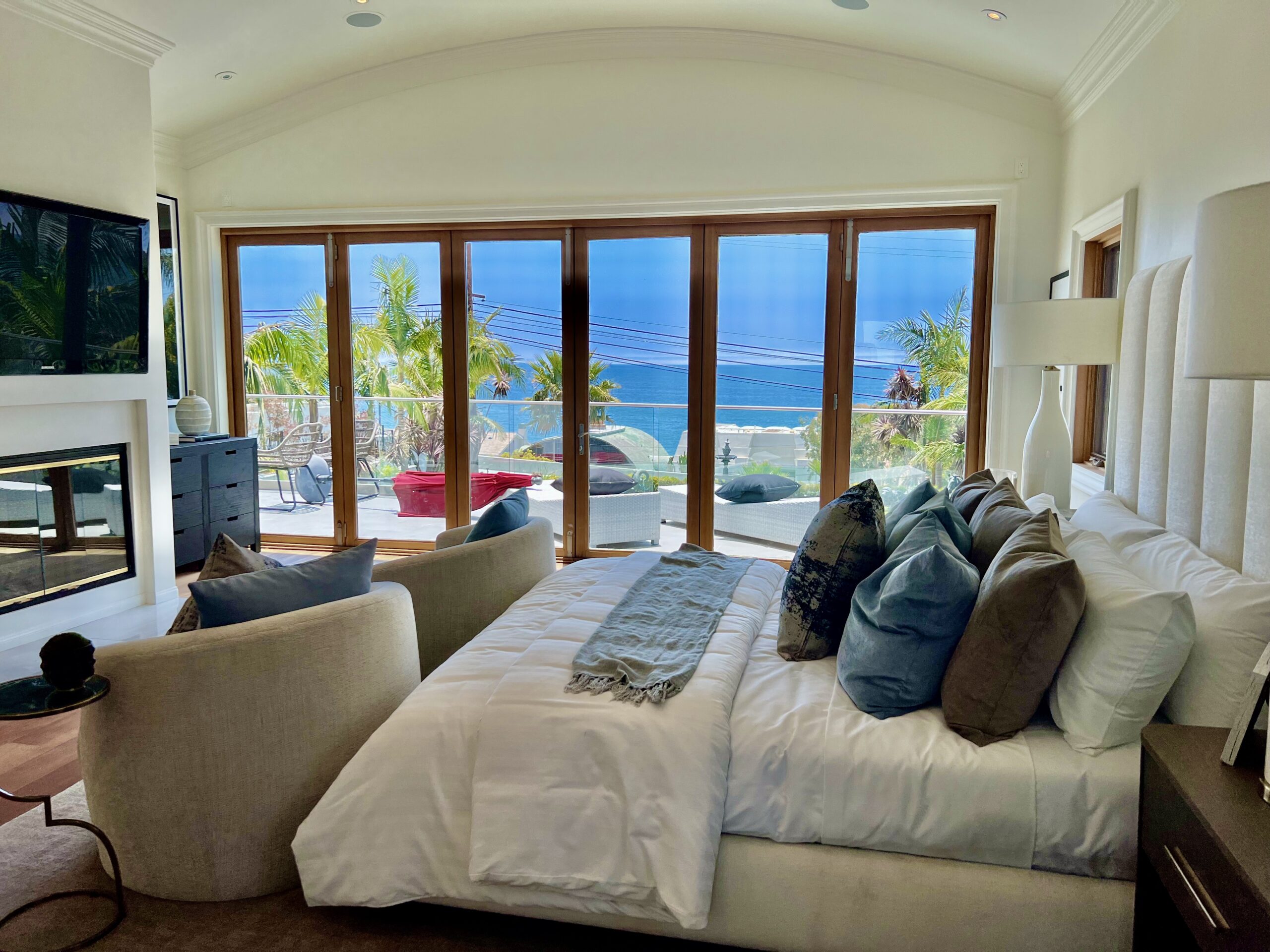This ocean view 4 bedroom, 5 bathroom home has exclusive tennis rights and beach rights with a private entrance to private Escondido beach. This newly renovated home has been recently furnished with all high-end furnishings and appliances. Most rooms have an ocean view. Enter through a gorgeous rotunda with a 20 foot wide skylight! Master faces the ocean, fold up doors invite the terrace inside, for that indoor/outdoor feel. Home has a huge grassy lawn with full ocean views, terraces and covered patio below. This home comes with membership to the private Sycamore Park tennis club as well as has a private entrance down to Escondido Beach that is only accessible to members of this community.