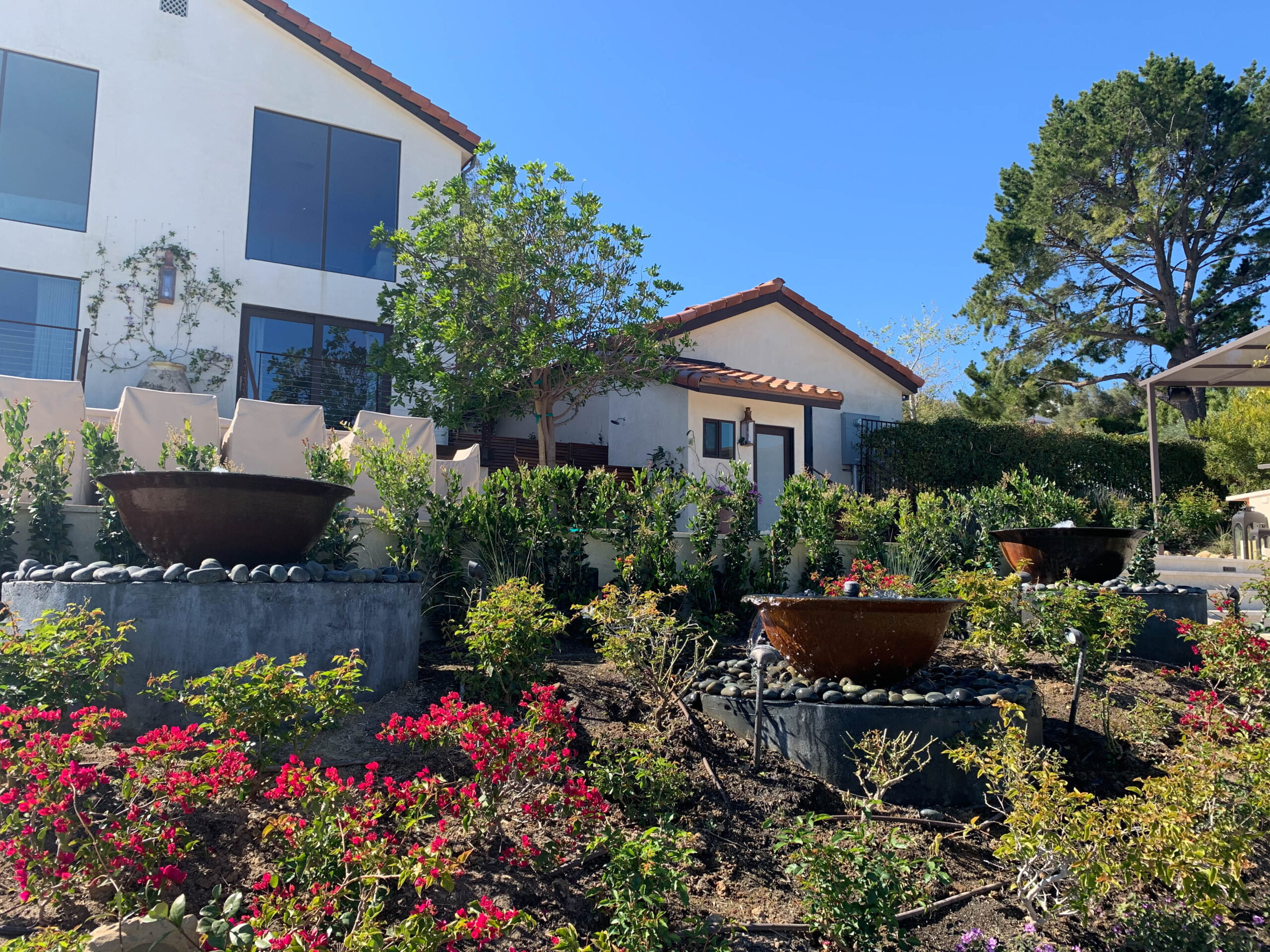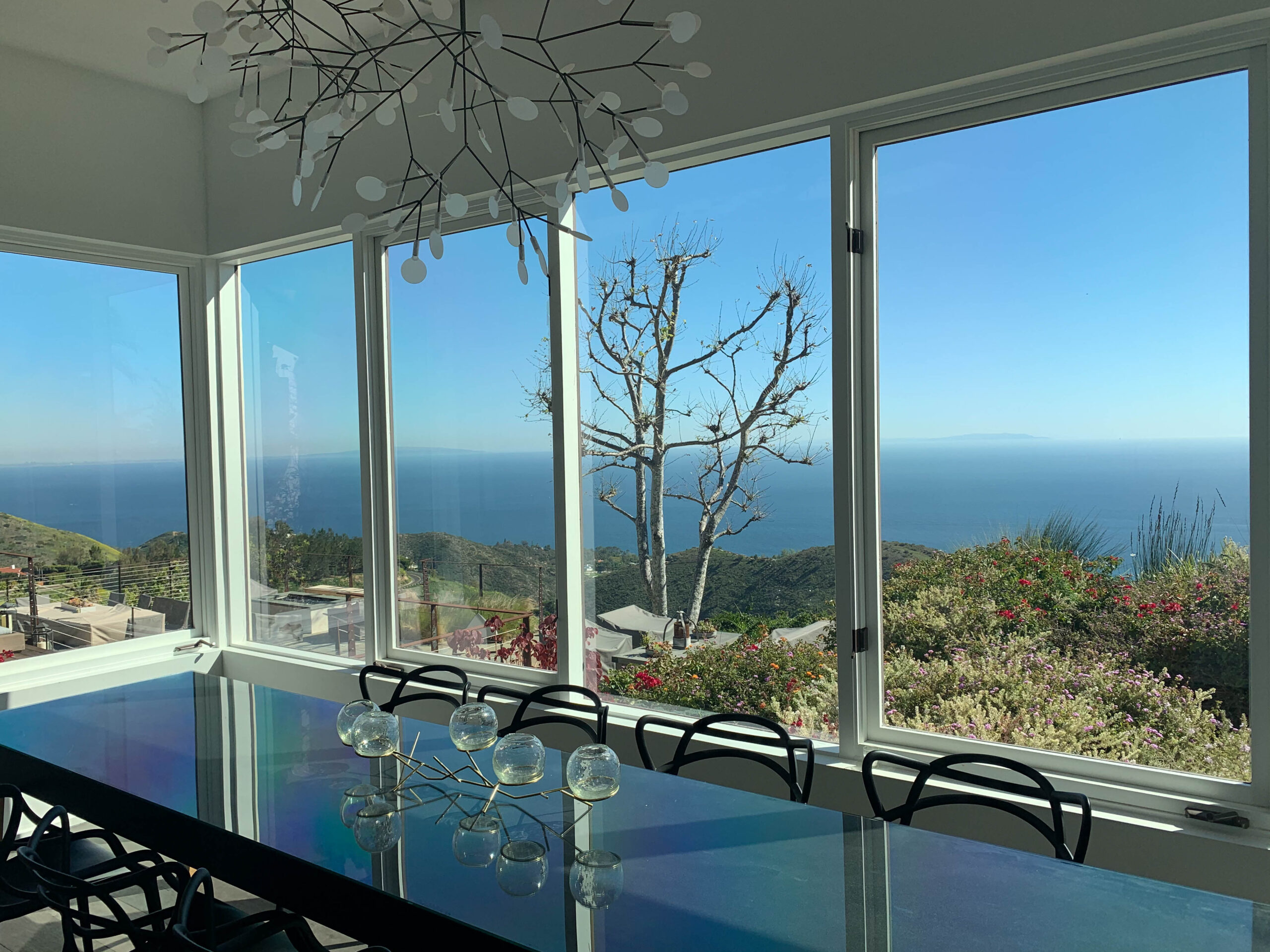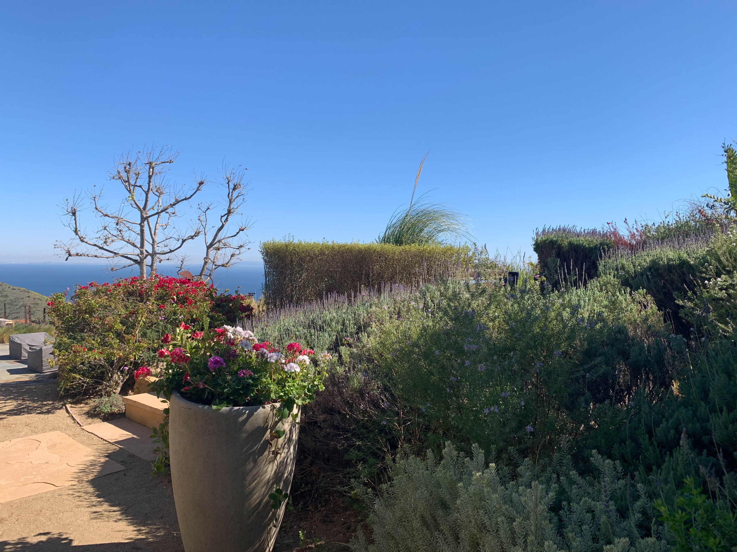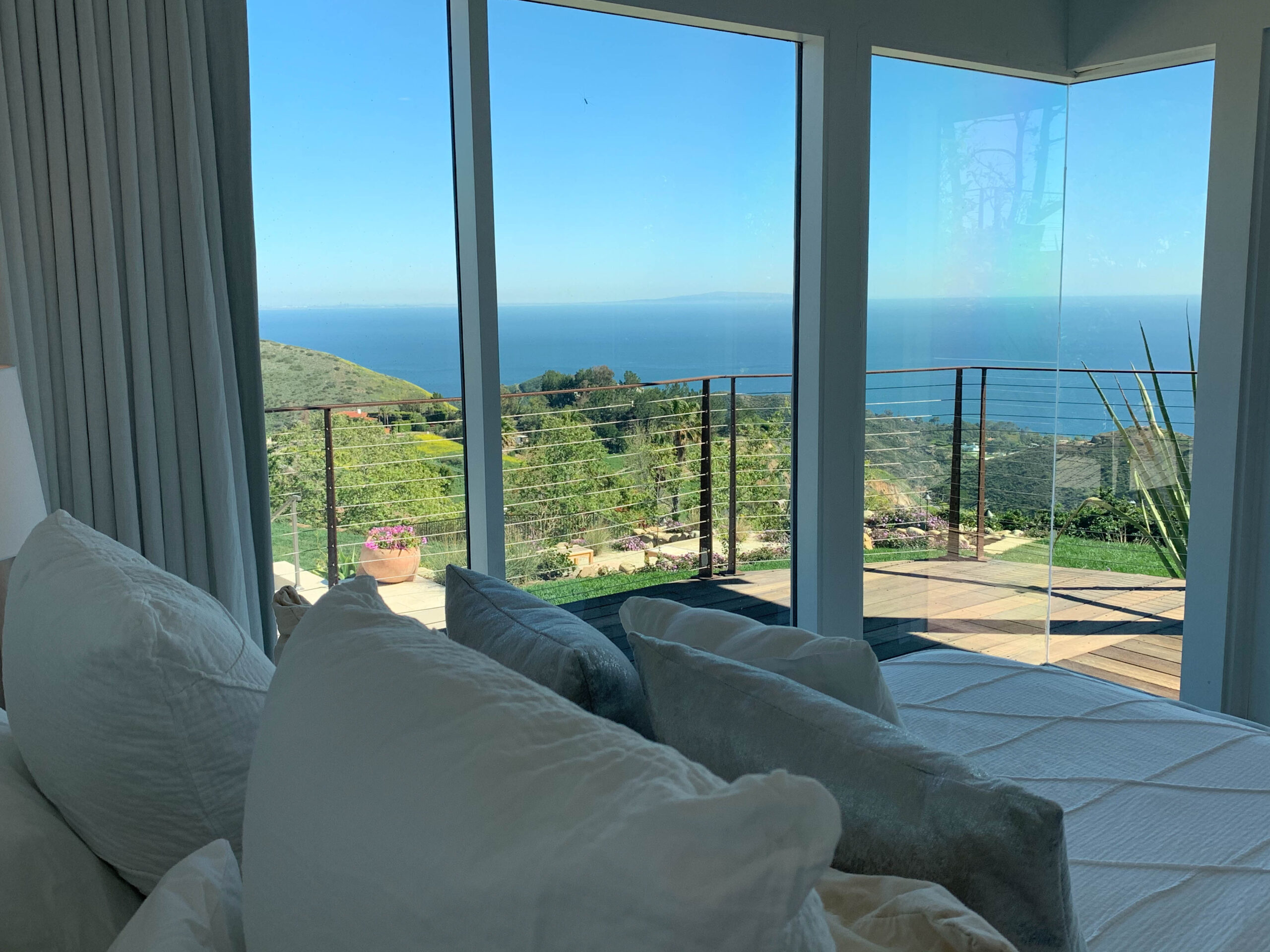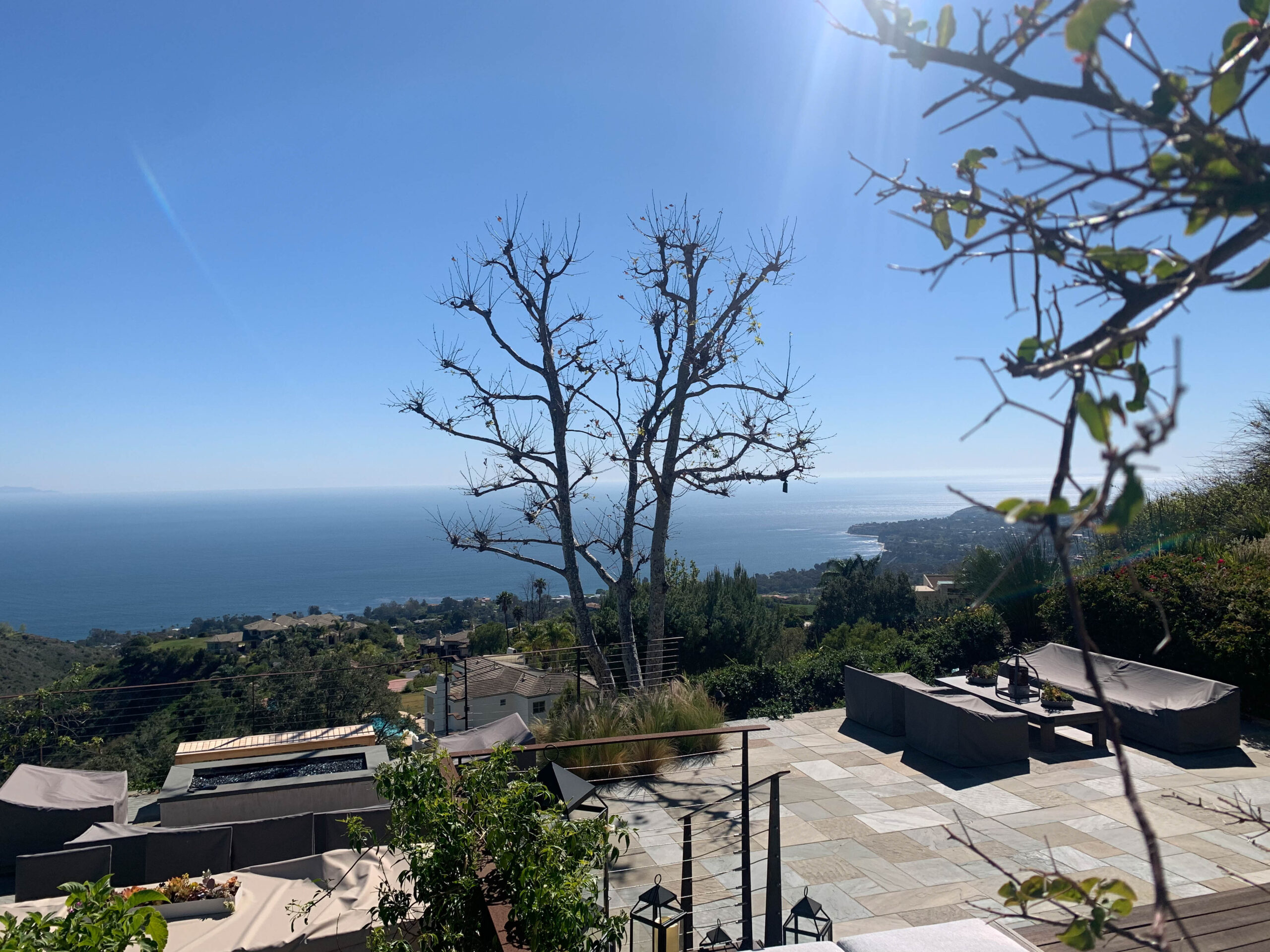 Enjoy magnificent ocean views from this 4 bedroom, 3 bath Spanish Modern pool home. With a flowing floor plan, this home is prefect for entertaining. Home has open great room plus a separate family room and den for quieter moments. Set on a flat acre lot with fruit trees, raised flower beds, meandering pathways and magical lighting, this property is a must for romantics and families alike. Ocean and pool views from almost every room are a delight. Grounds contain a huge grassy lawn, fire pits, fountains, ” beach area” and an outdoor bar with TV. High end kitchen and baths complete the Lux feel of this property.
