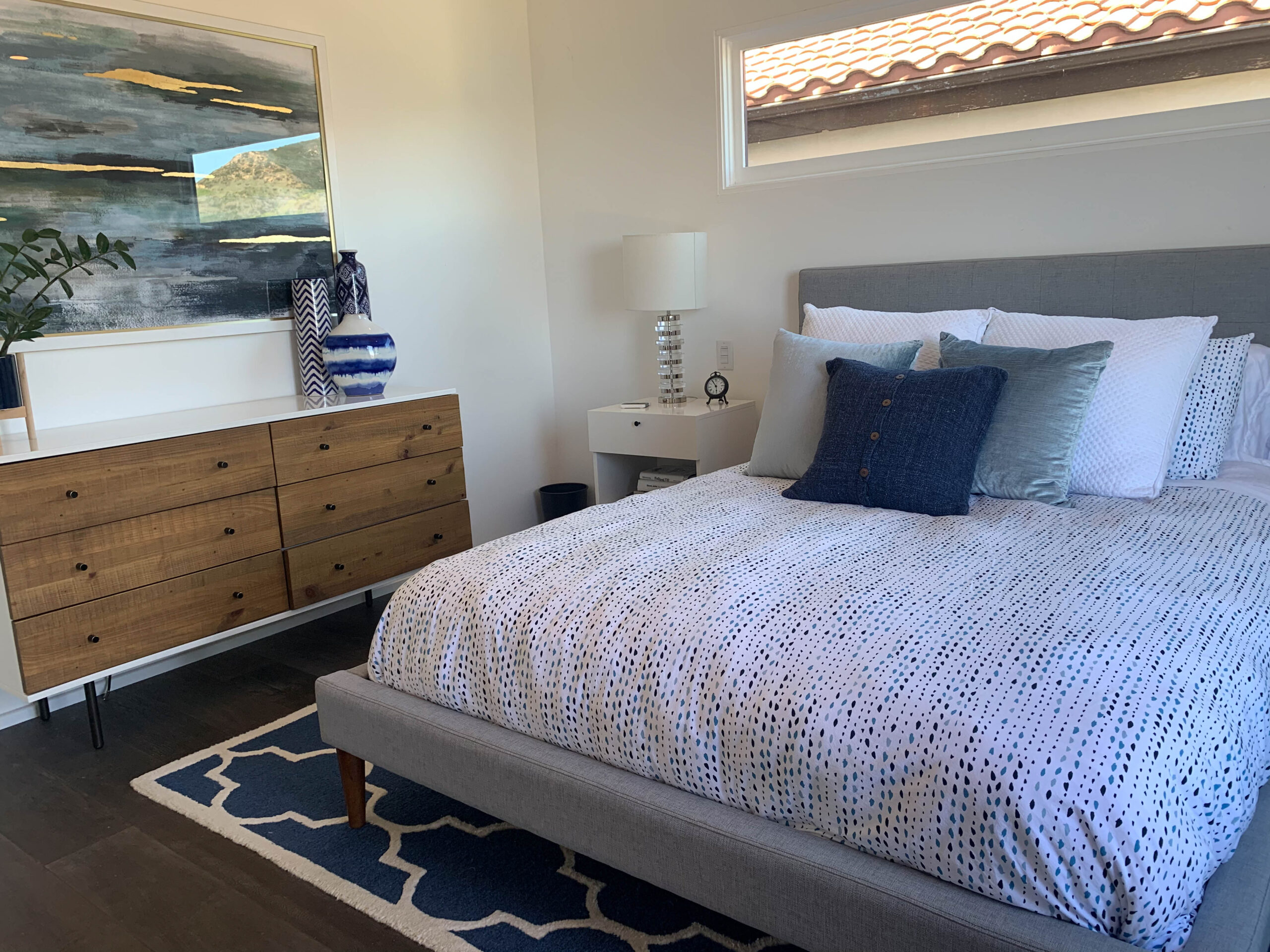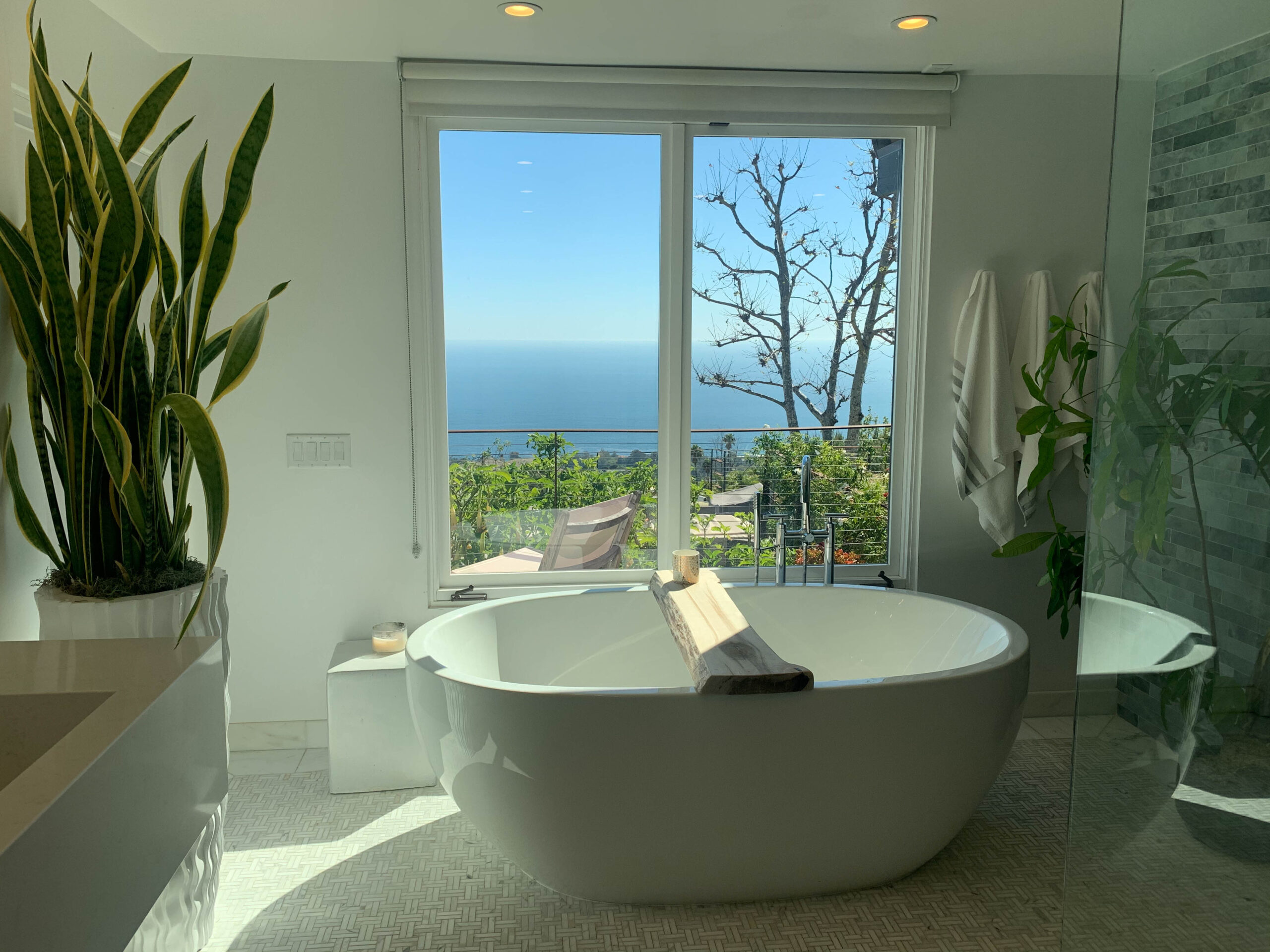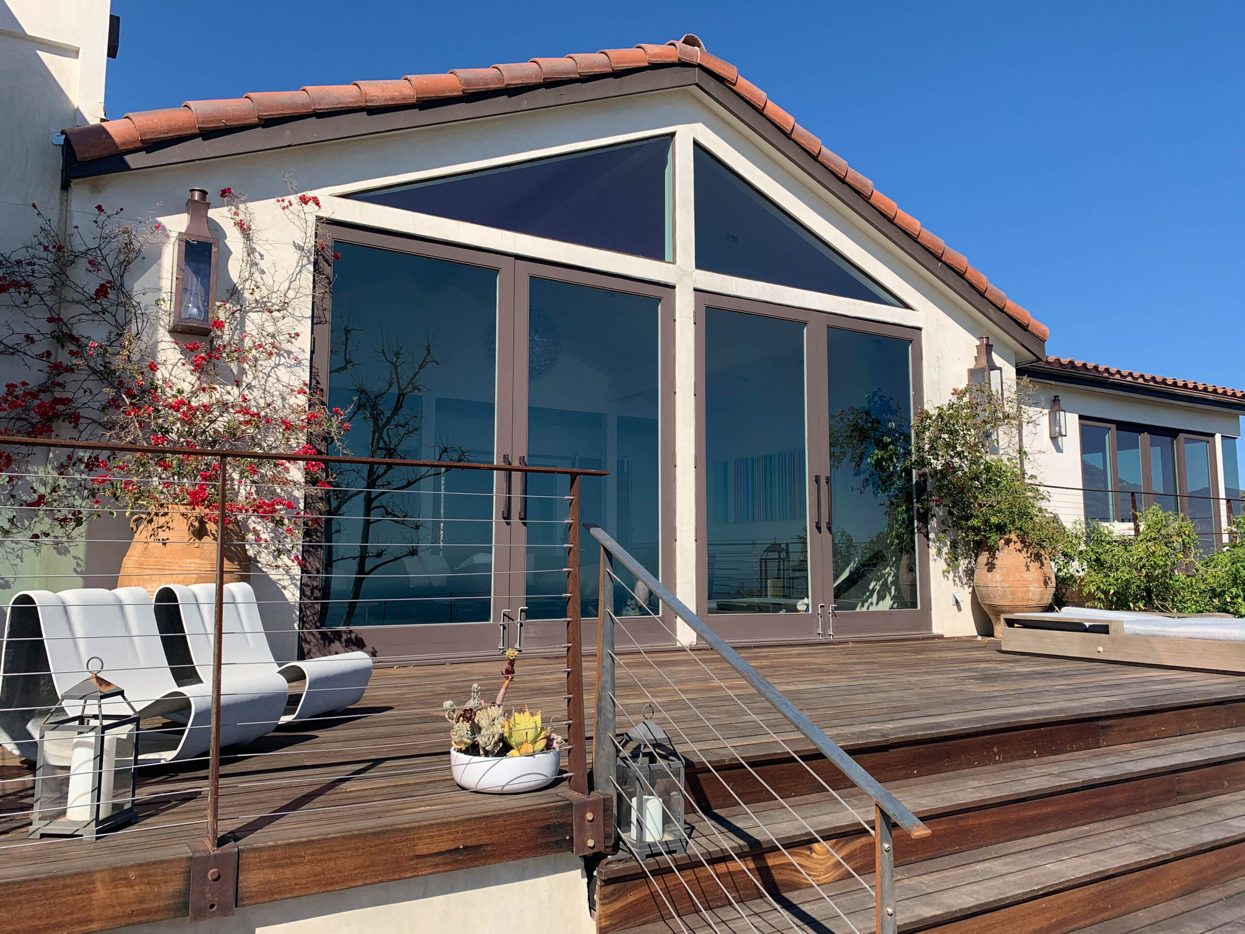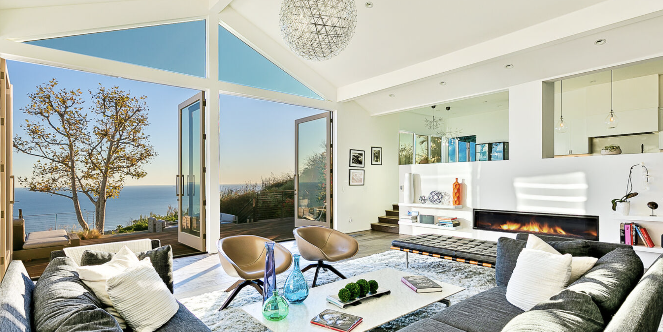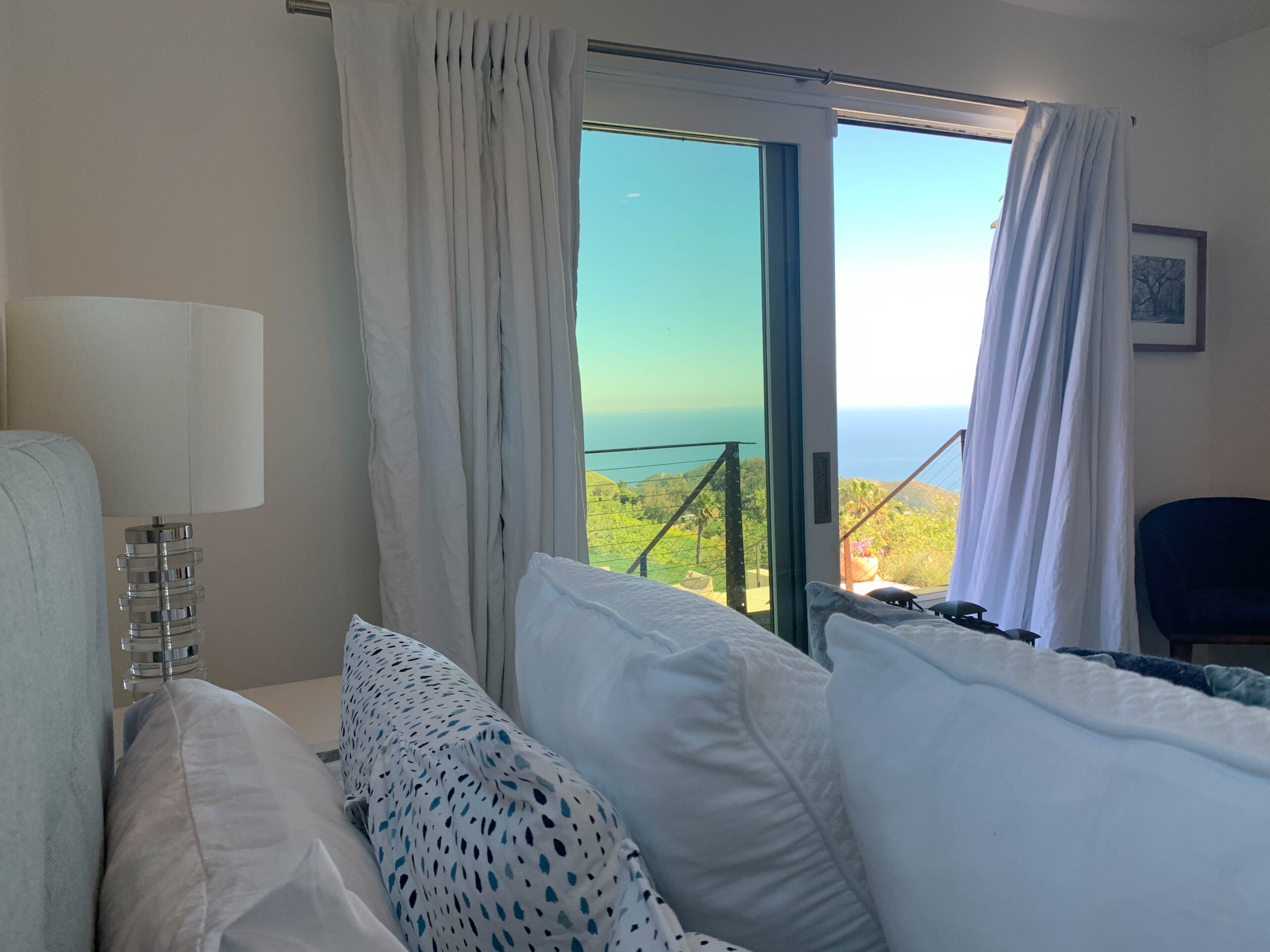 Enjoy magnificent ocean views from this 4 bedroom, 3 bath Spanish Modern pool home. With a flowing floor plan, this home is prefect for entertaining. Home has open great room plus a separate family room and den for quieter moments. Set on a flat acre lot with fruit trees, raised flower beds, meandering pathways and magical lighting, this property is a must for romantics and families alike. Ocean and pool views from almost every room are a delight. Grounds contain a huge grassy lawn, fire pits, fountains, ” beach area” and an outdoor bar with TV. High end kitchen and baths complete the Lux feel of this property.