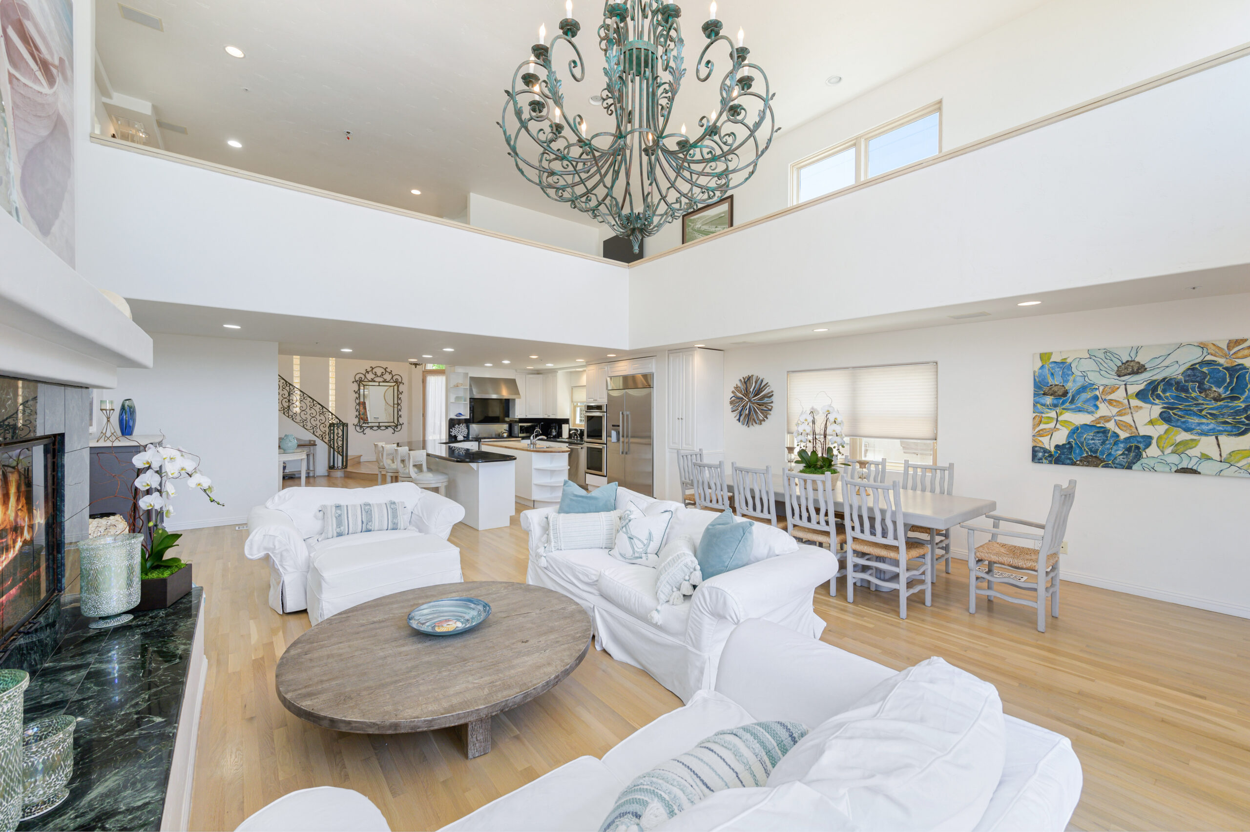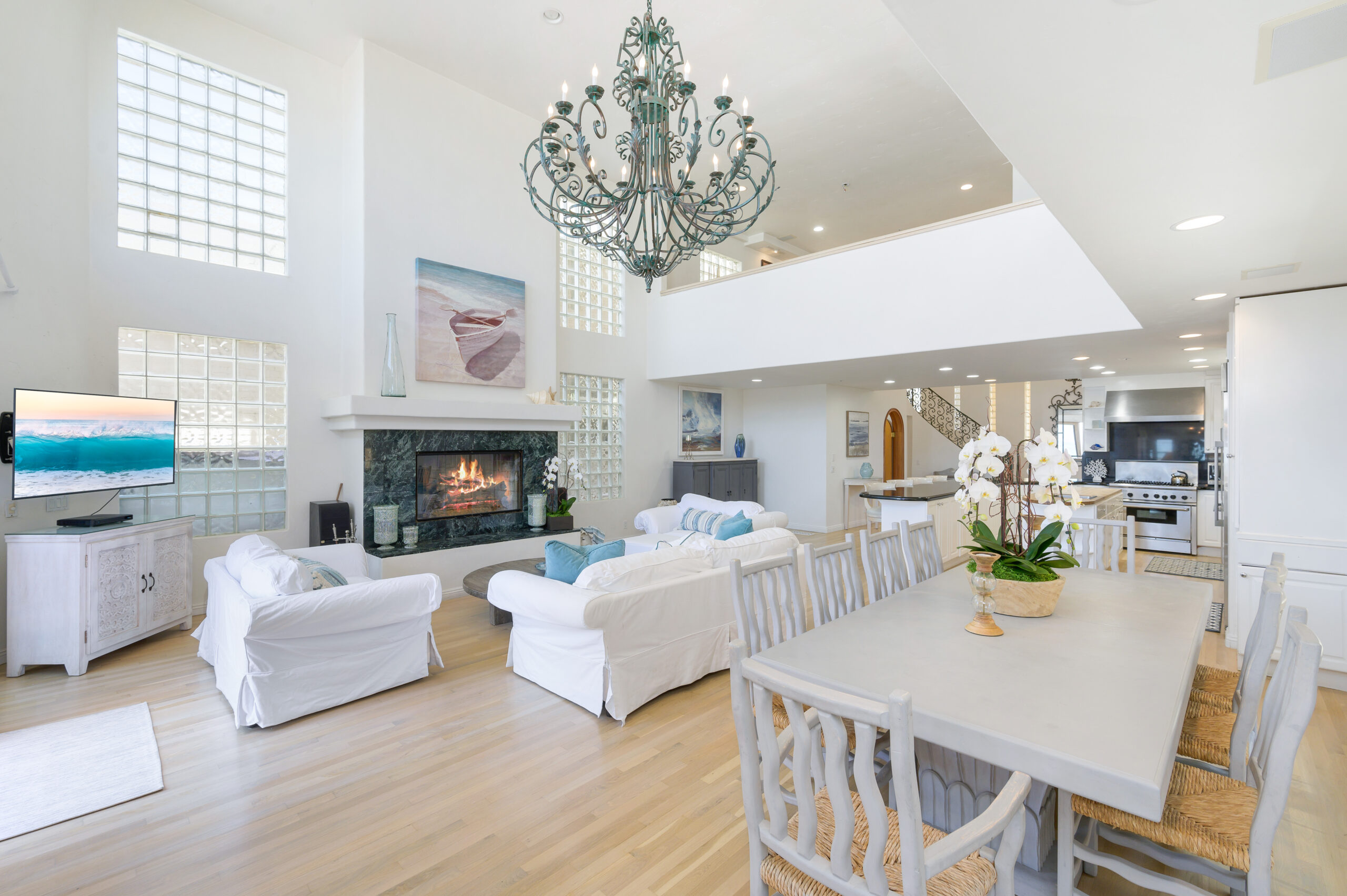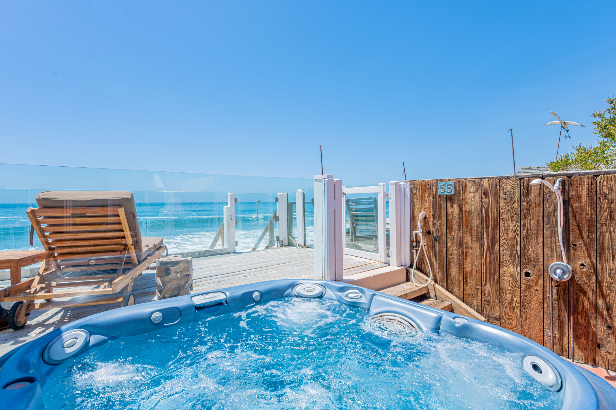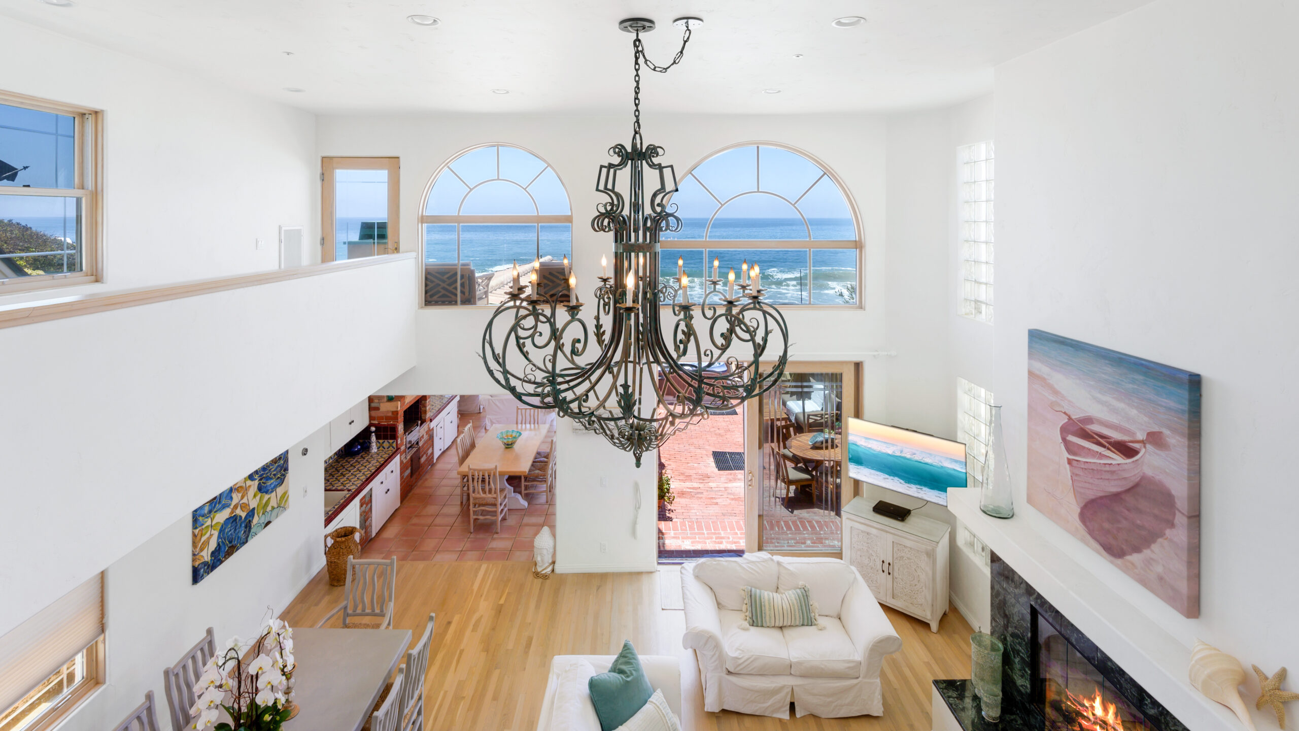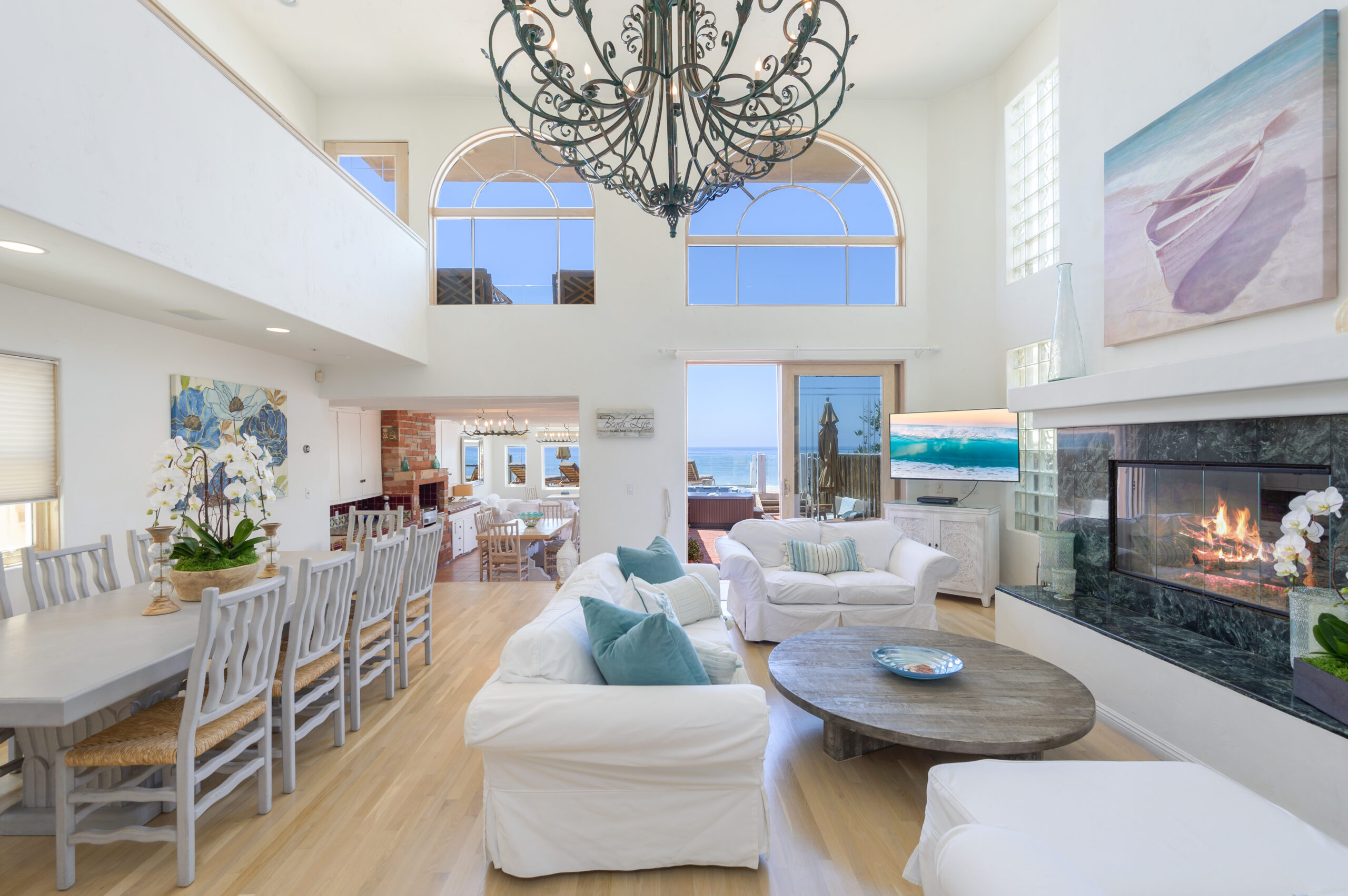 Inside the gates of the Malibu Colony, Contemporary Mediterranean ocean front paradise. This elegant and inviting home boast high ceilings, a gourmet kitchen and an open floor plan. The living room and magical tea room lead out to a large beach front patio with ocean view spa and outside dining area perfect for entertaining with friends. On the mezzanine level a pool table and bar. Master suite with a private balcony, ocean view spa and steam shower. Huge separate guesthouse with high ceilings, living room, one bedroom and one bath.