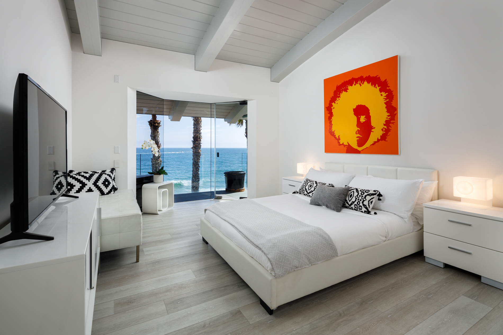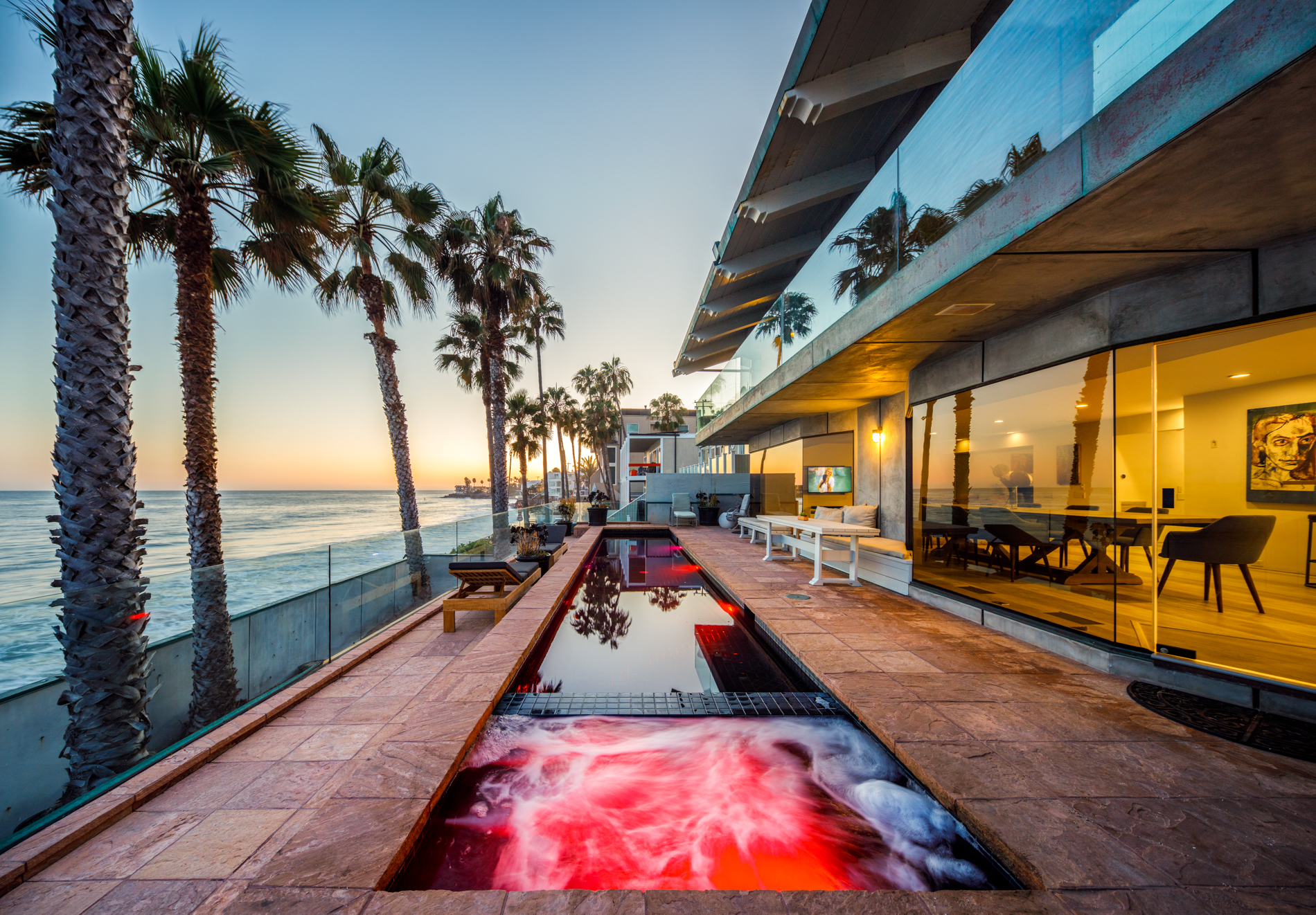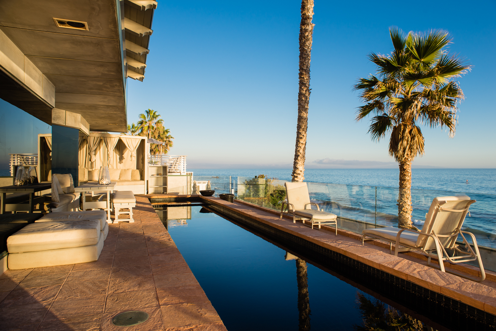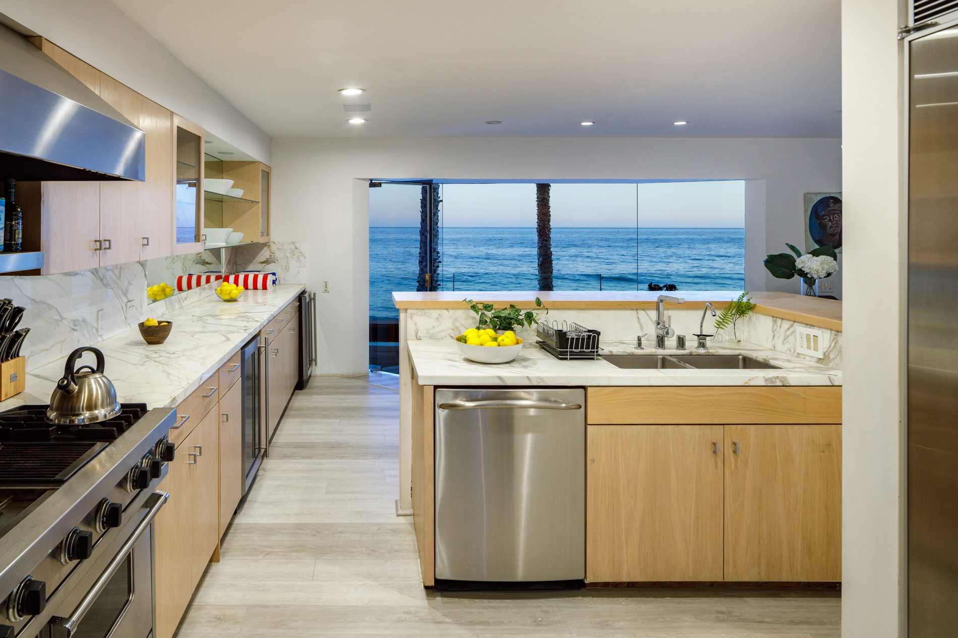 This Beach House has a Boutique Hotel feel with a wow factor master suite inc a soaking tub with ocean views. Walls of glass open up this serene yet sexy home to the pacific blue ocean. 2 Ocean facing bedrooms on this double wide lot mean more views. A chefs kitchen with Viking appliances, and Marble counter tops make this fuctional as well as  fantastic.