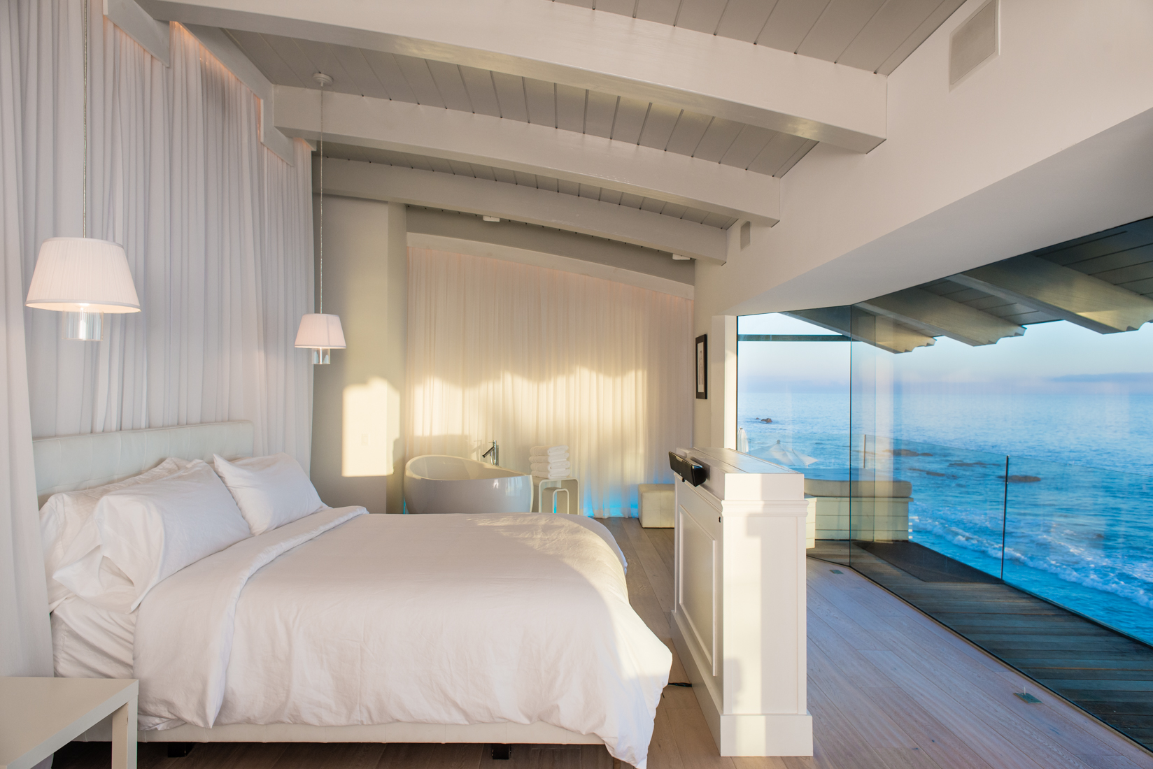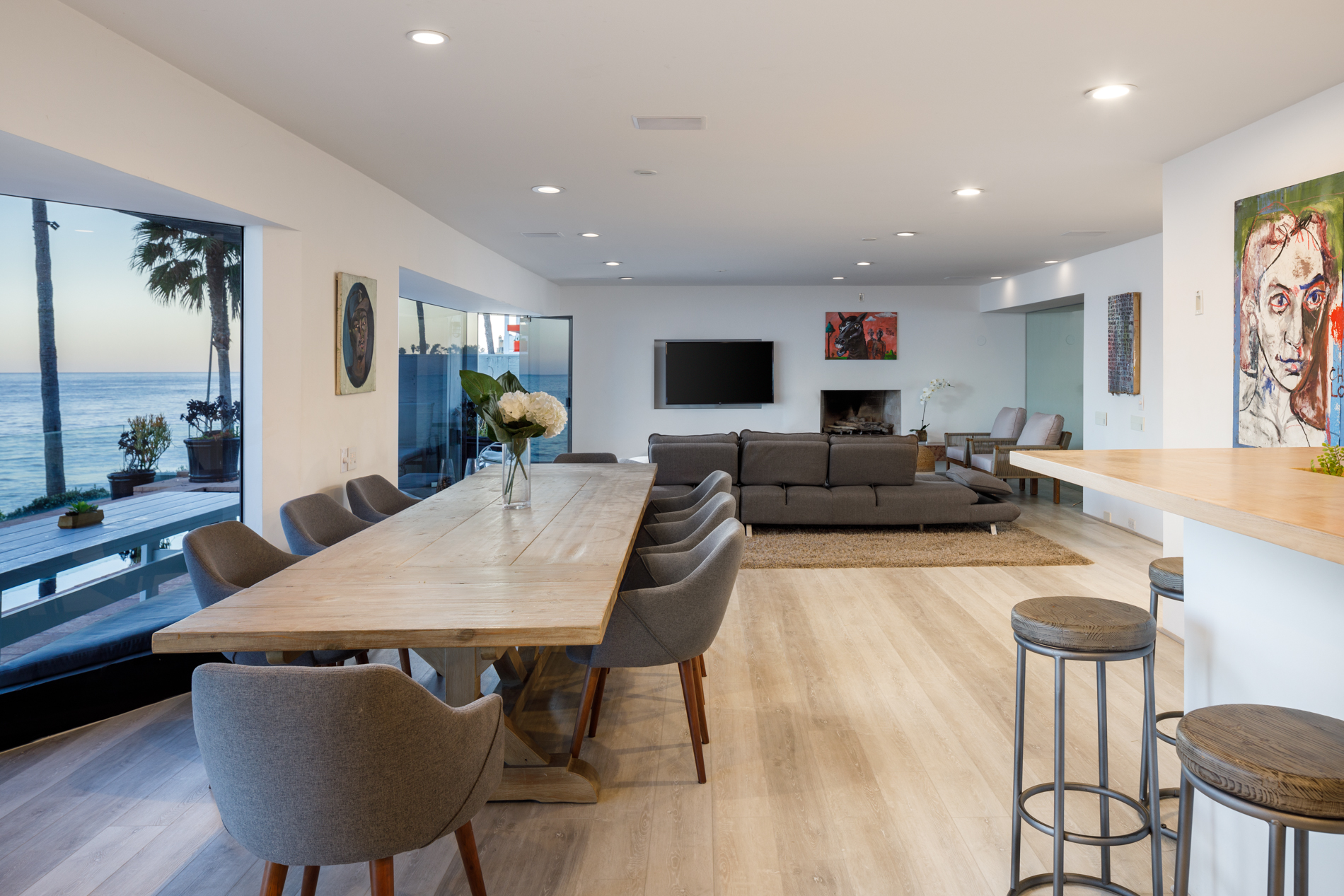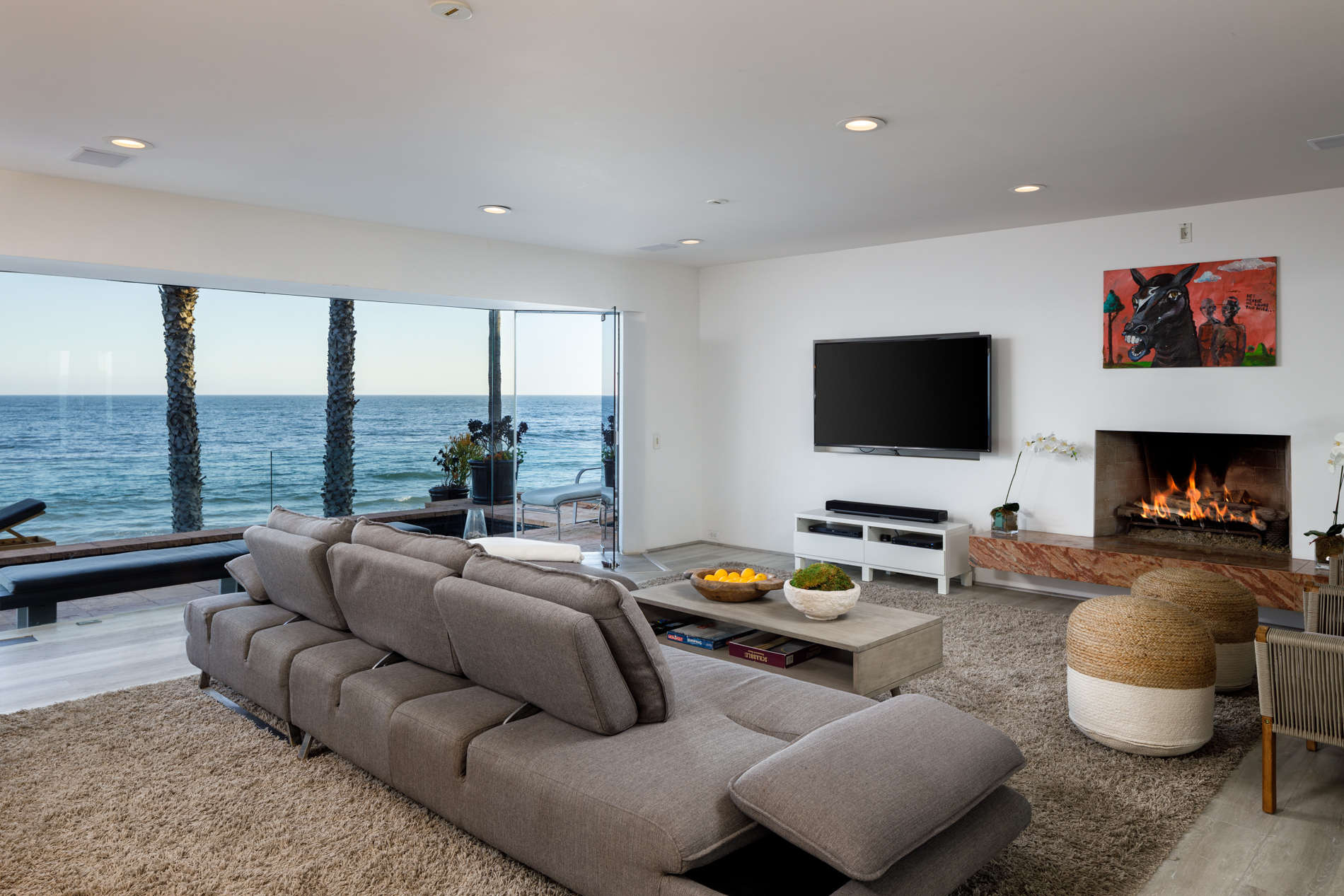 This Beach House has a Boutique Hotel feel with a wow factor master suite inc a soaking tub with ocean views. Walls of glass open up this serene yet sexy home to the pacific blue ocean. 2 Ocean facing bedrooms on this double wide lot mean more views. A chefs kitchen with Viking appliances, and Marble counter tops make this fuctional as well as  fantastic.