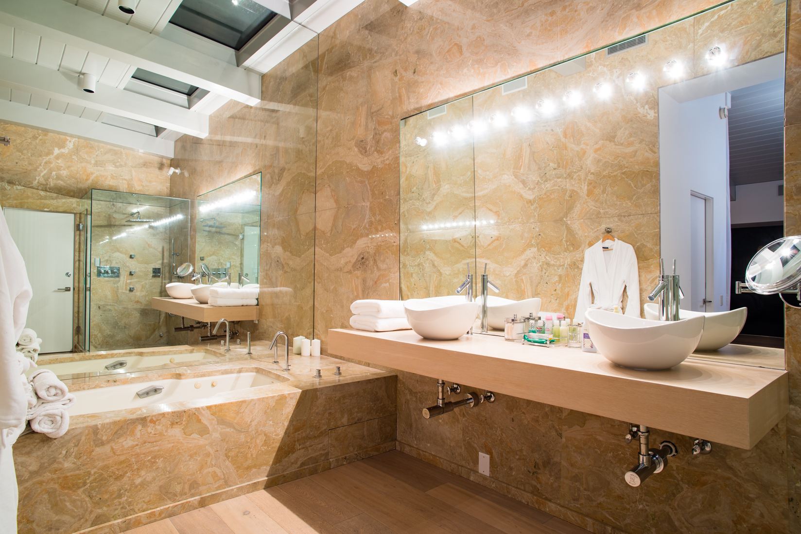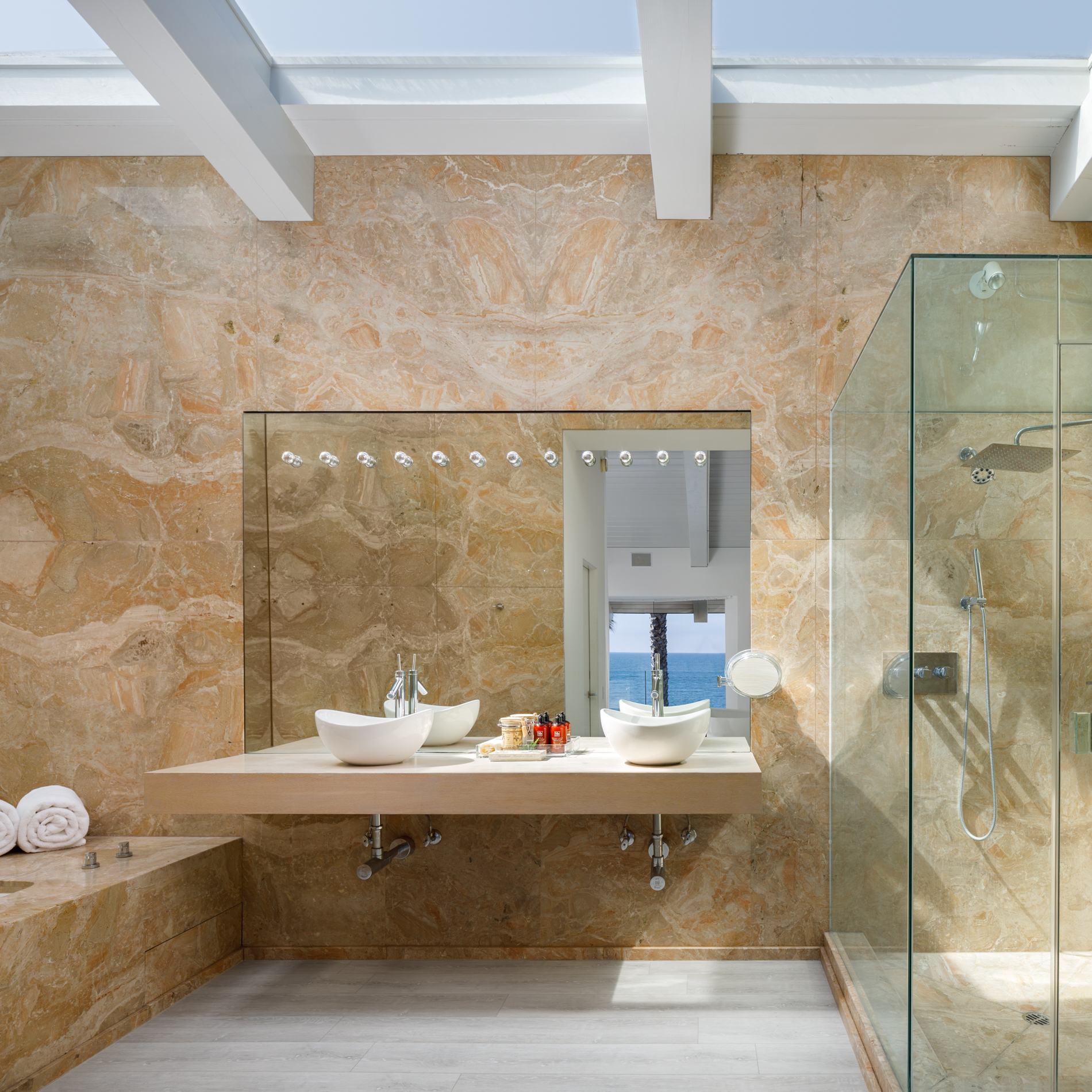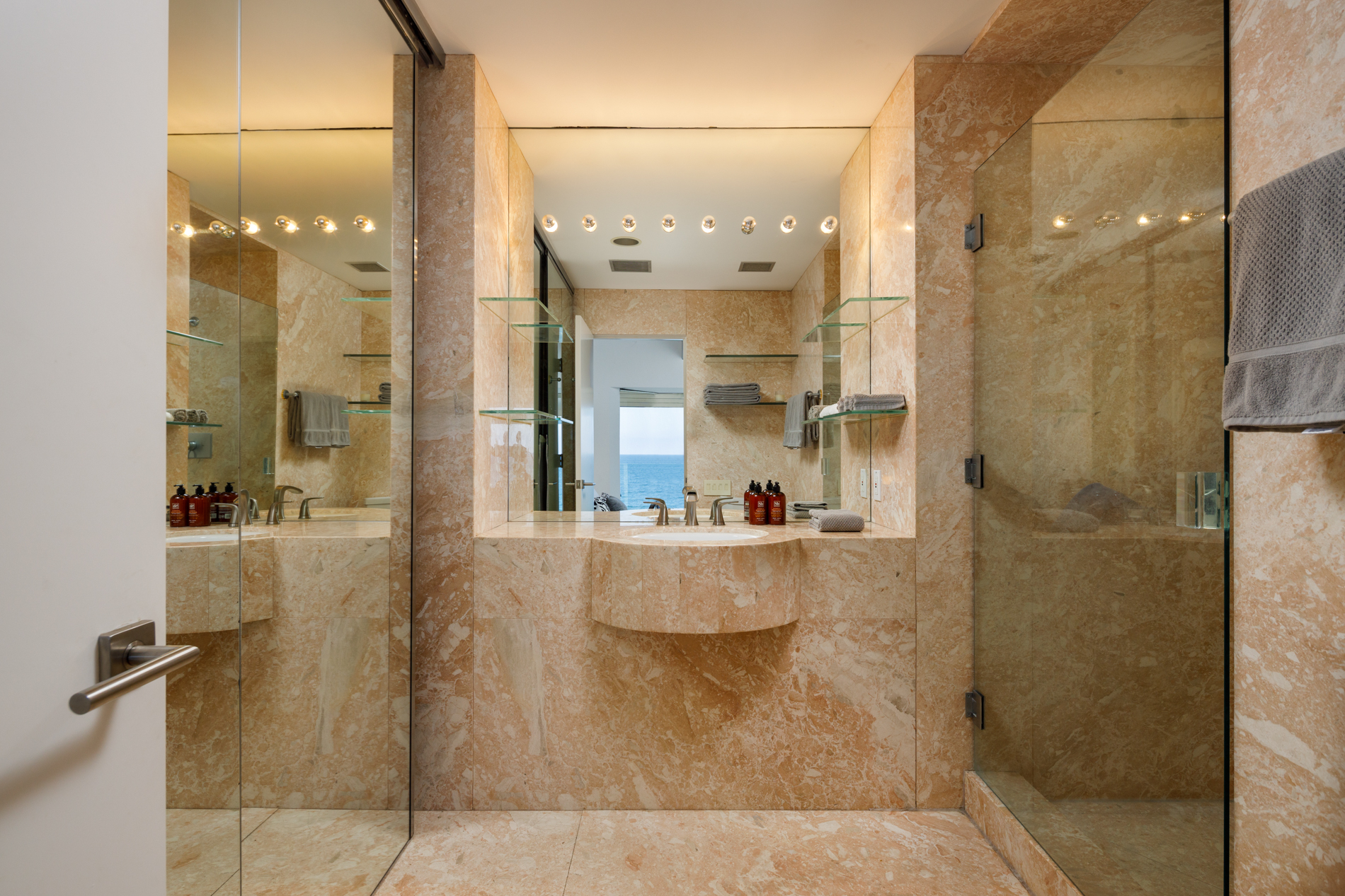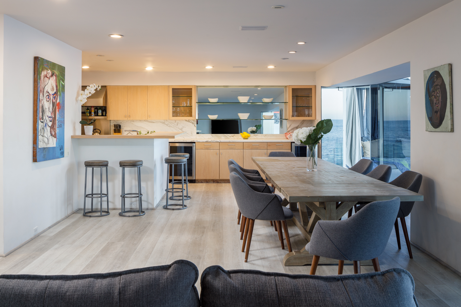 This Beach House has a Boutique Hotel feel with a wow factor master suite inc a soaking tub with ocean views. Walls of glass open up this serene yet sexy home to the pacific blue ocean. 2 Ocean facing bedrooms on this double wide lot mean more views. A chefs kitchen with Viking appliances, and Marble counter tops make this fuctional as well as  fantastic.