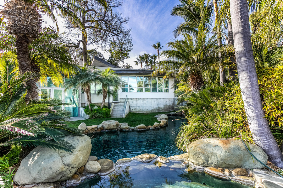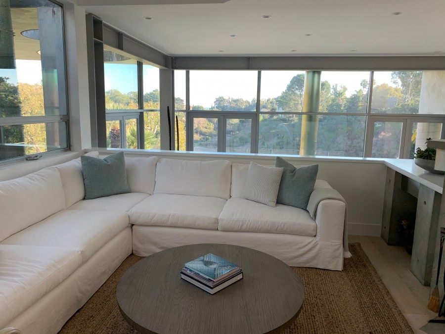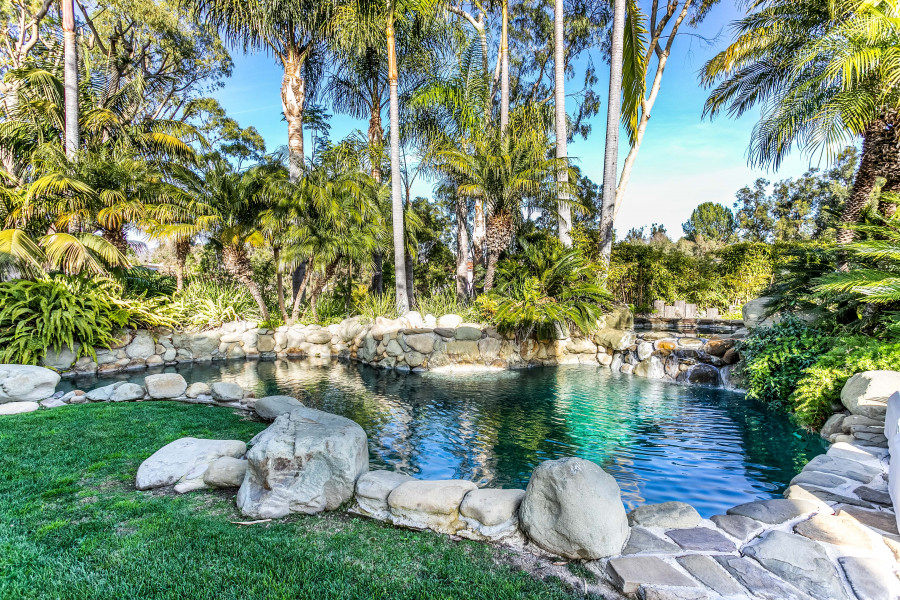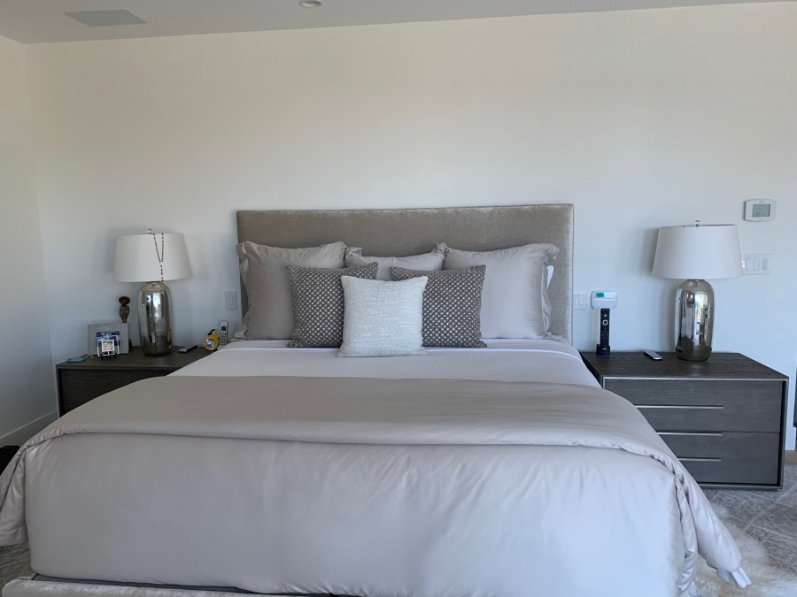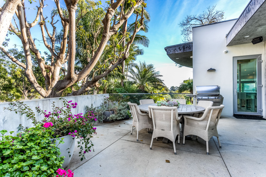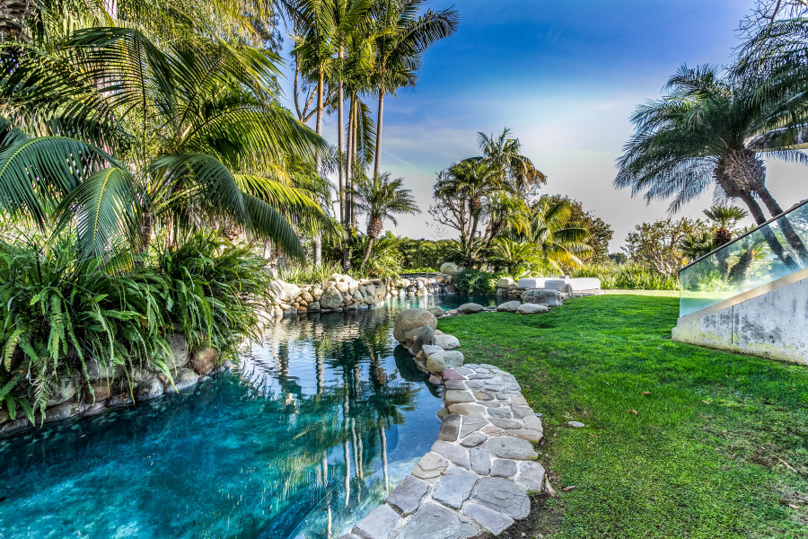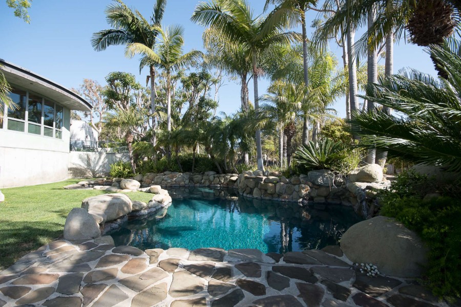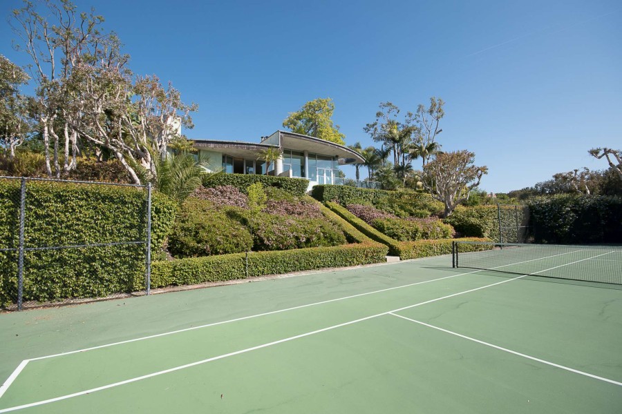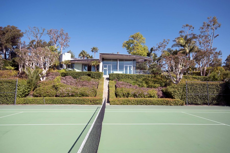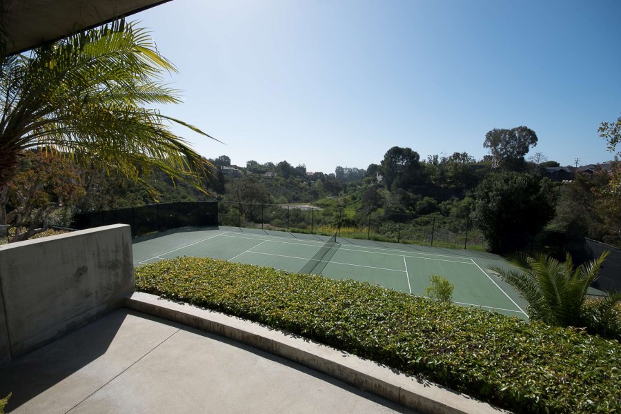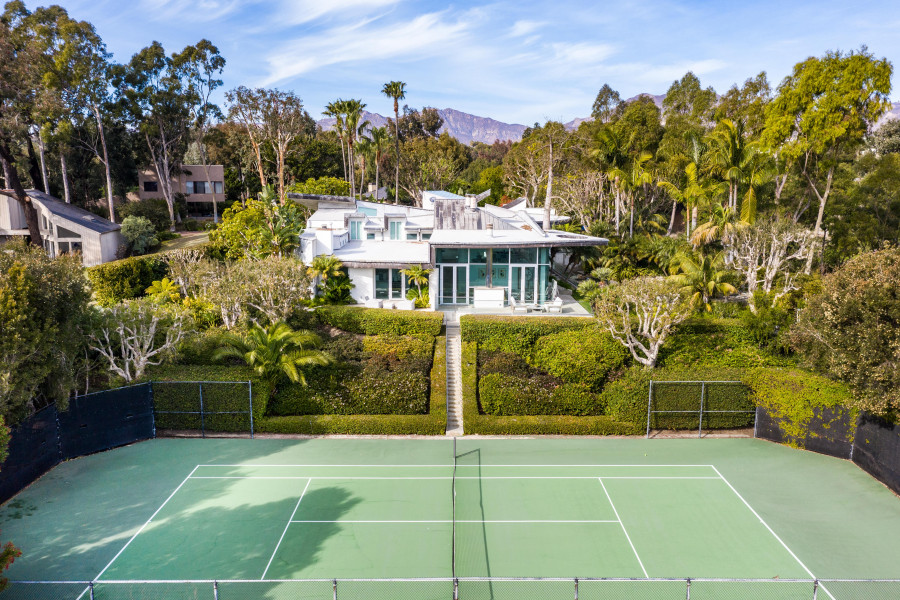 This 5 bedroom home with 4 baths is open and light with views of the lovely grounds, mountains and tennis courts. This Modern home features top of the line appliances, sleek furnishings and lots of high ceilings. . A sparkling pool and spa with waterfall complete this oasis.
