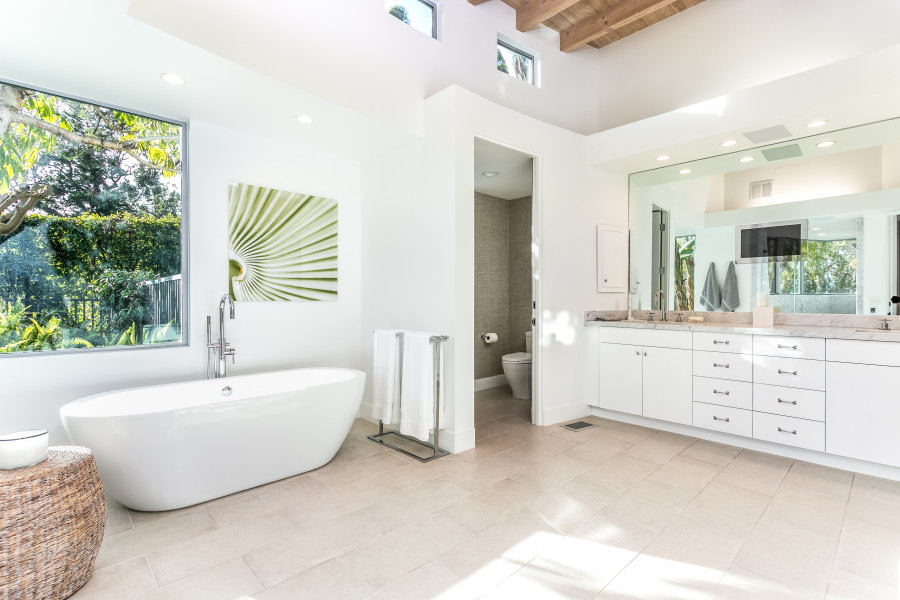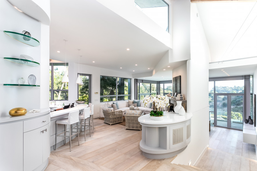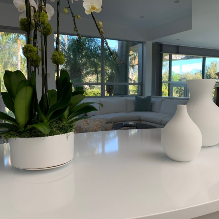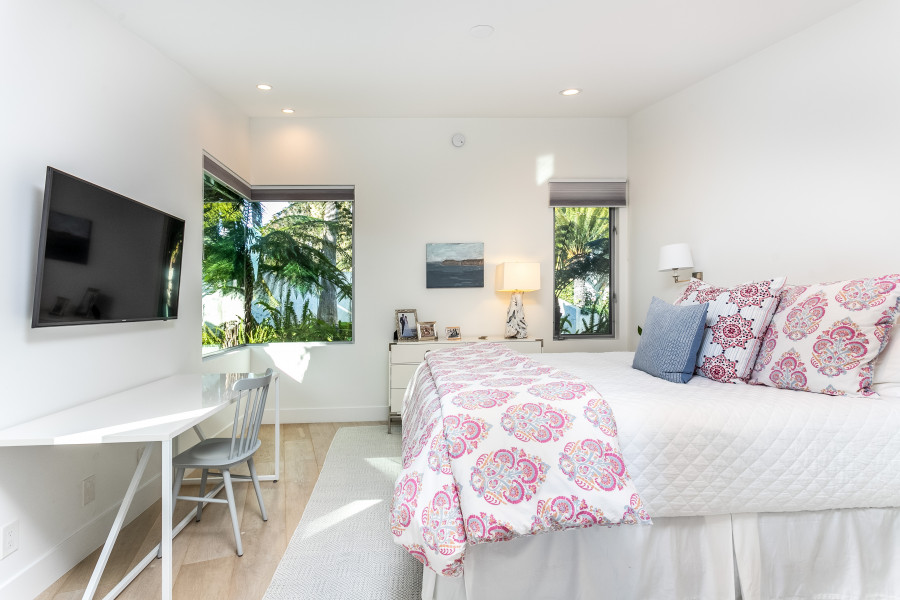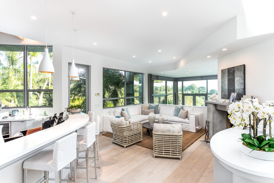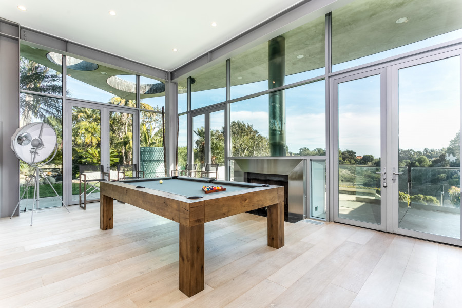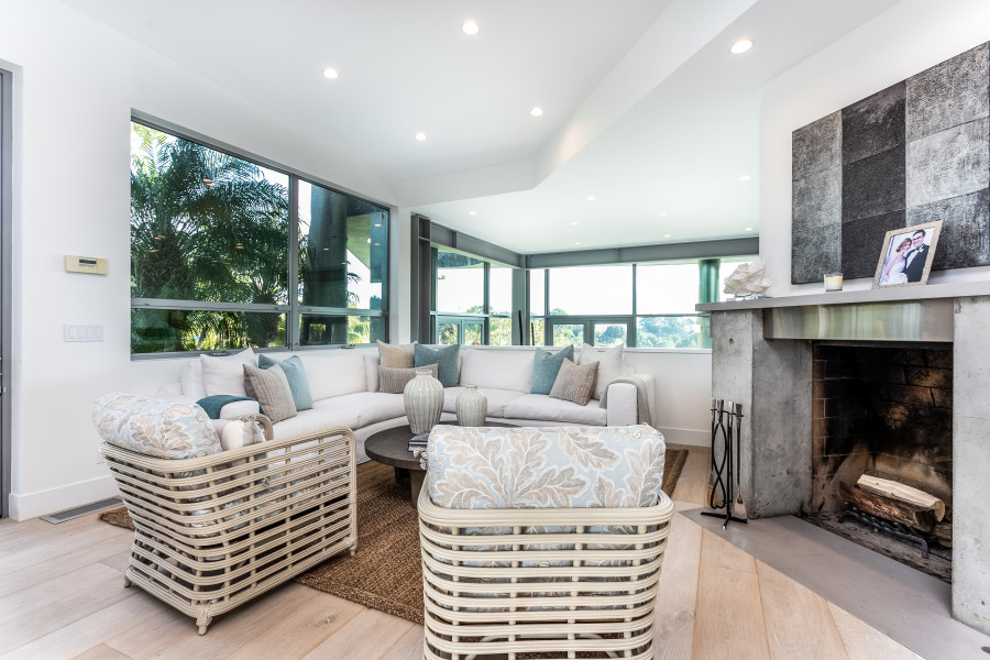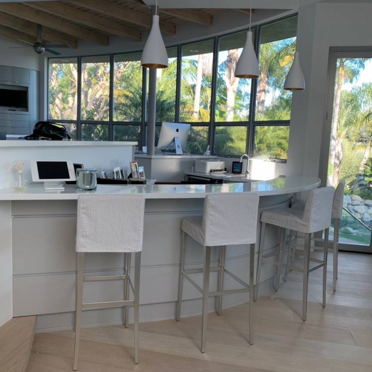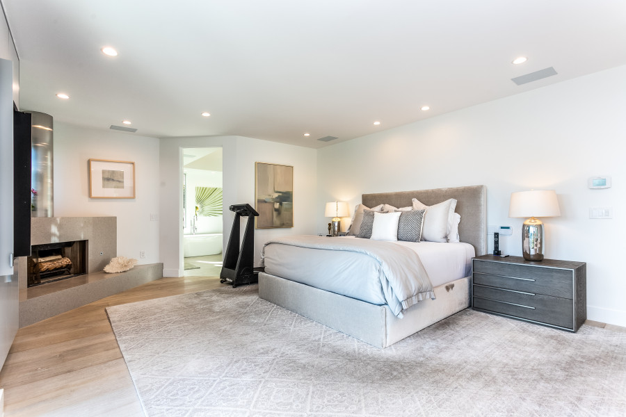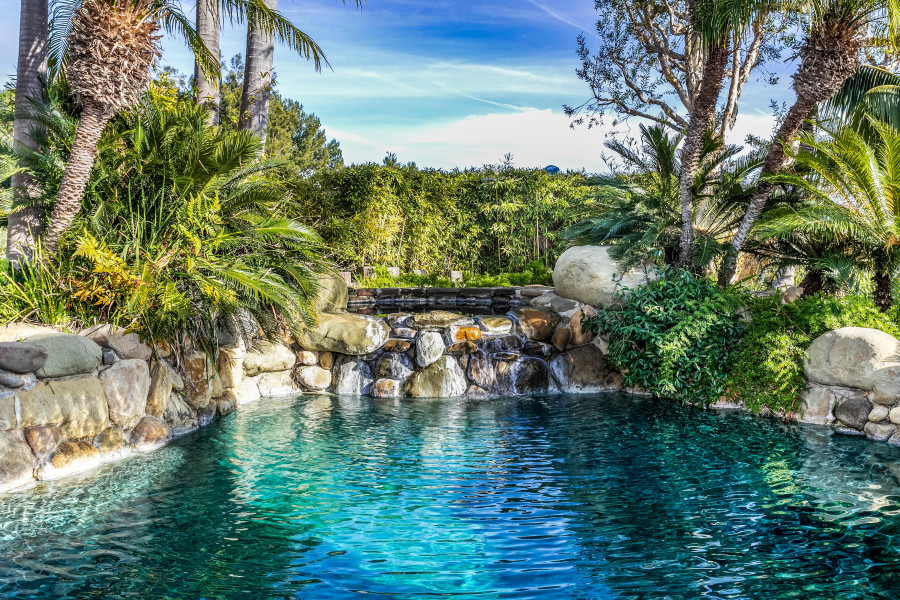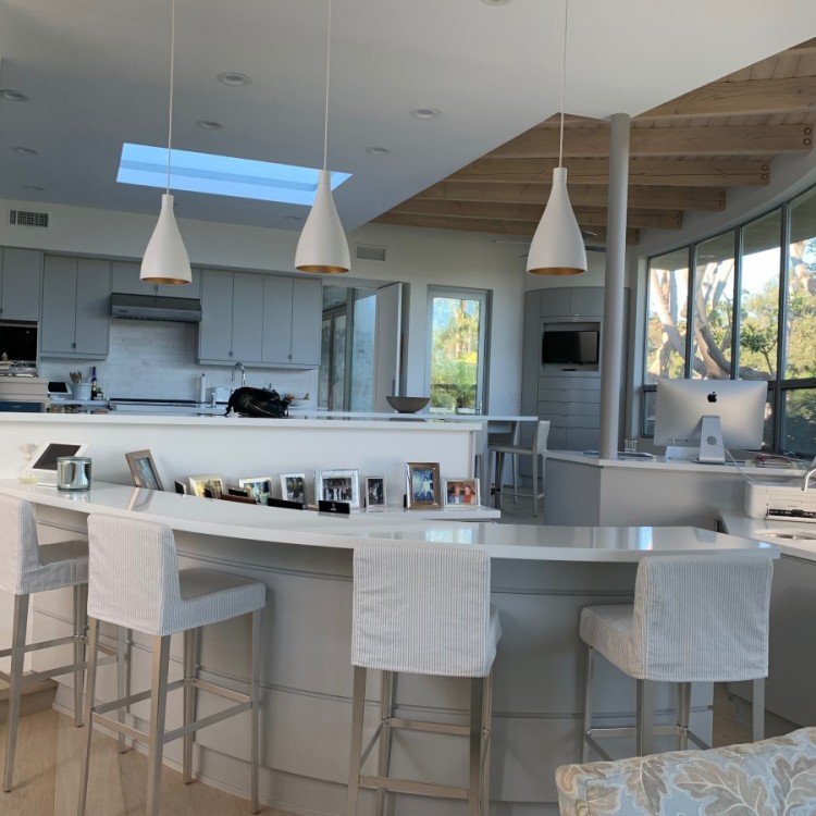 This 5 bedroom home with 4 baths is open and light with views of the lovely grounds, mountains and tennis courts. This Modern home features top of the line appliances, sleek furnishings and lots of high ceilings. . A sparkling pool and spa with waterfall complete this oasis.