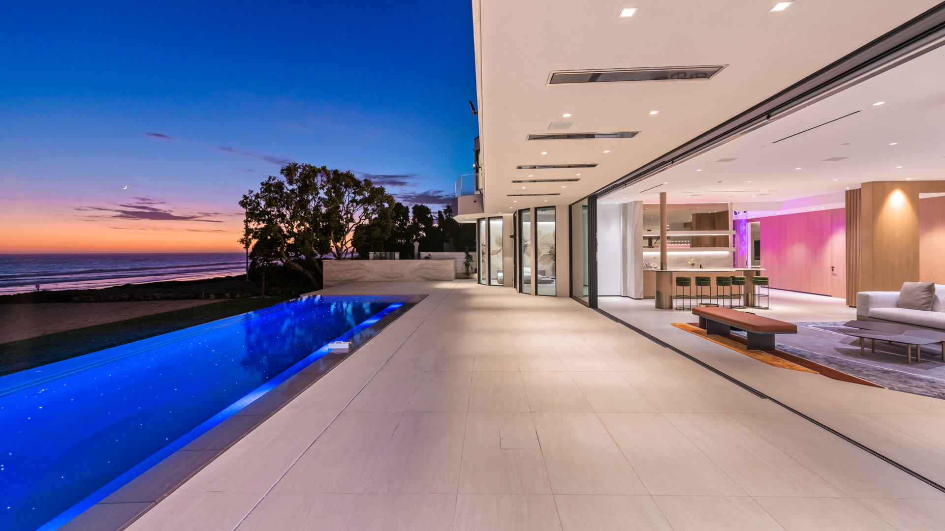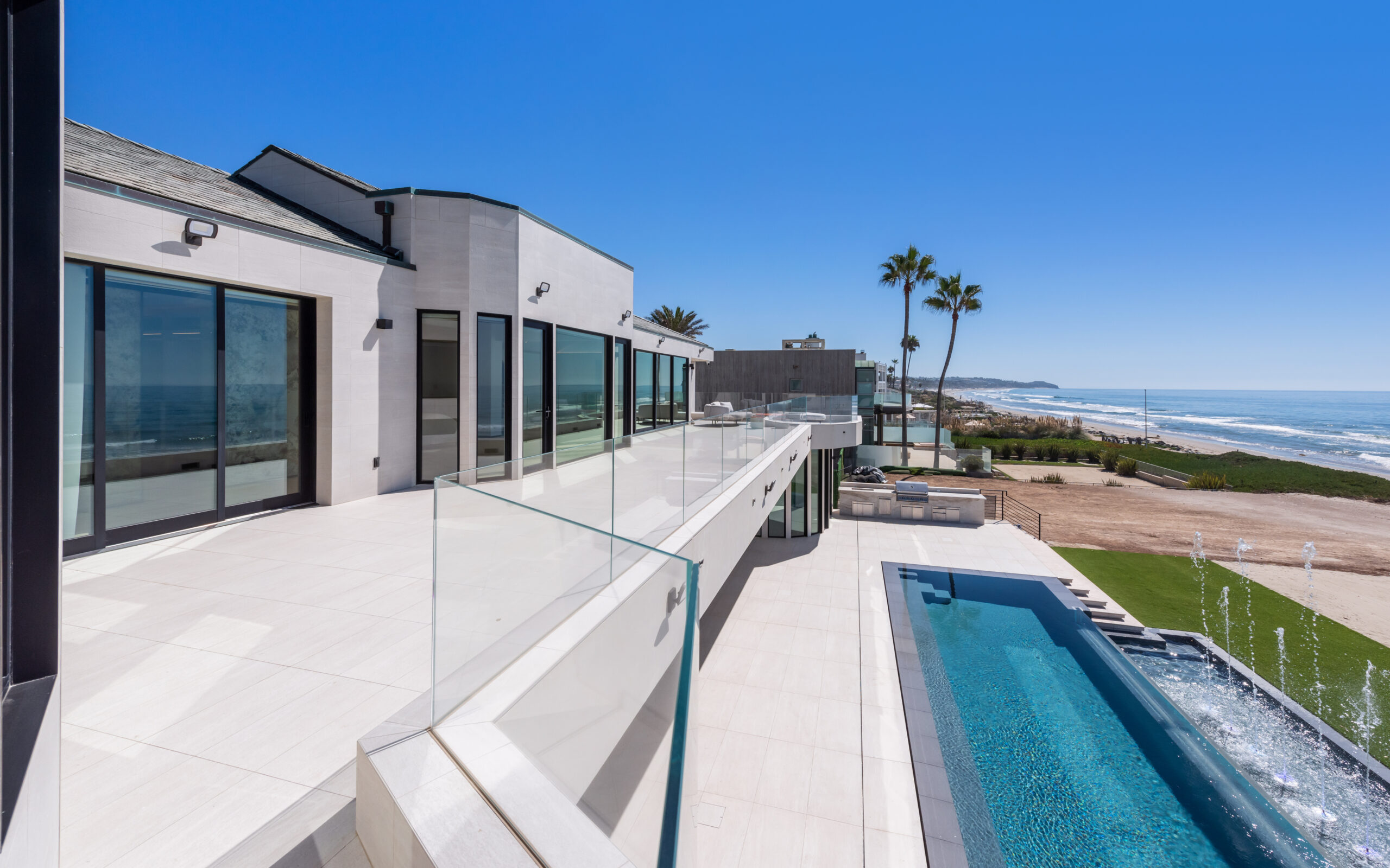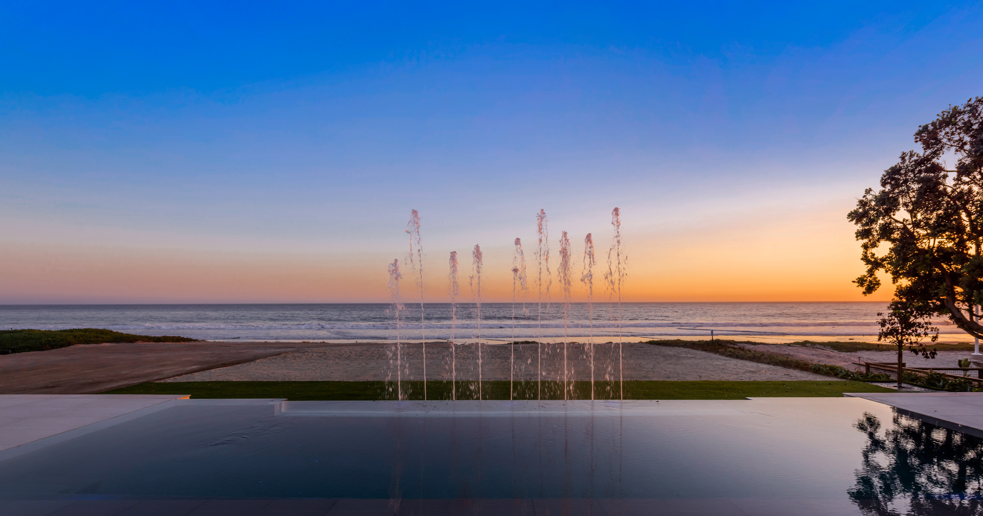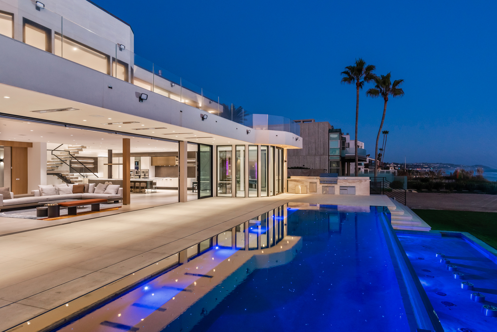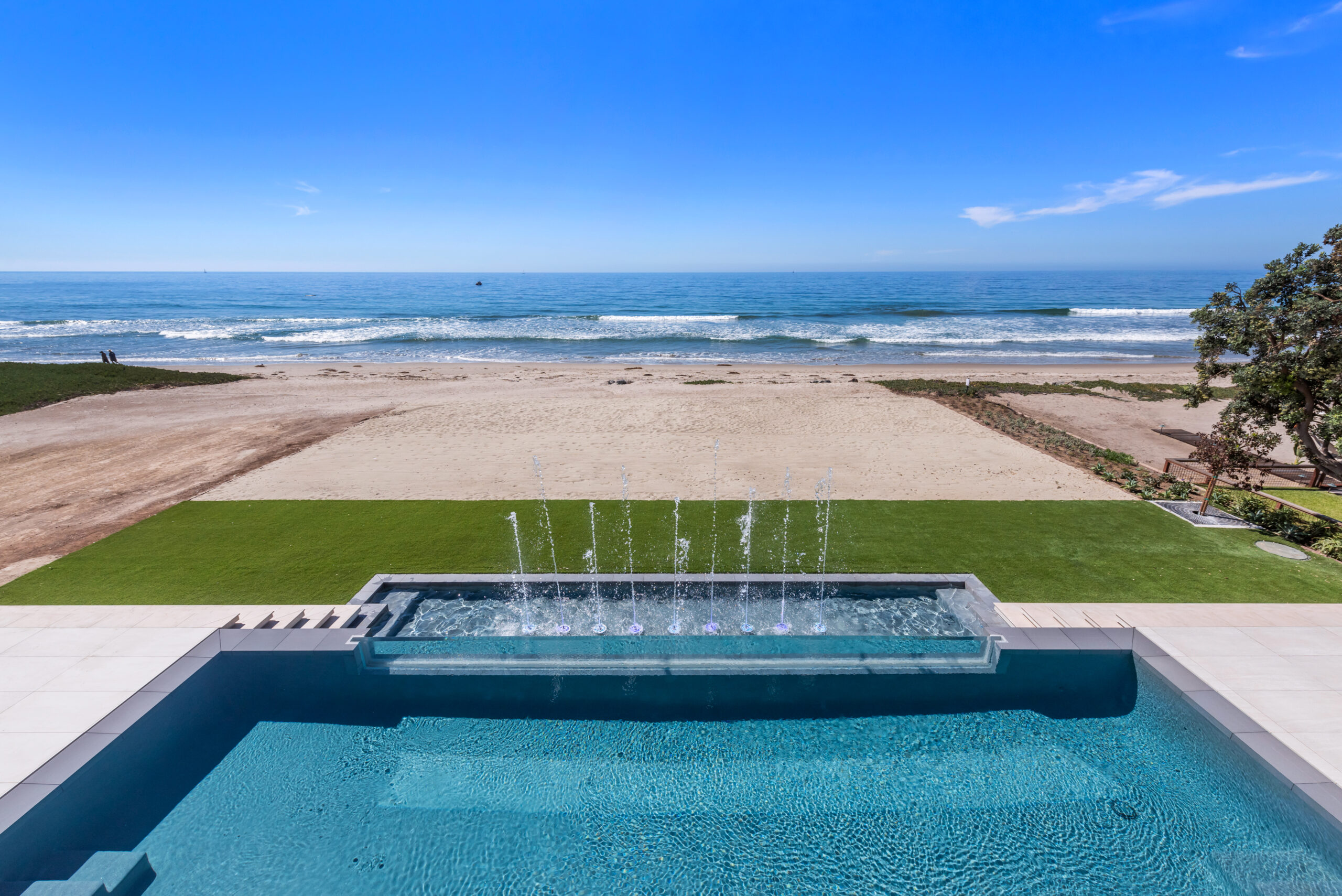 - The Beachside Entertainment area has a built-in Barbeque, A 40’ infinity edge pool with a Baja shelf. A dancing fountain, as well as over 6,000 s.f of decking and entertainment space.