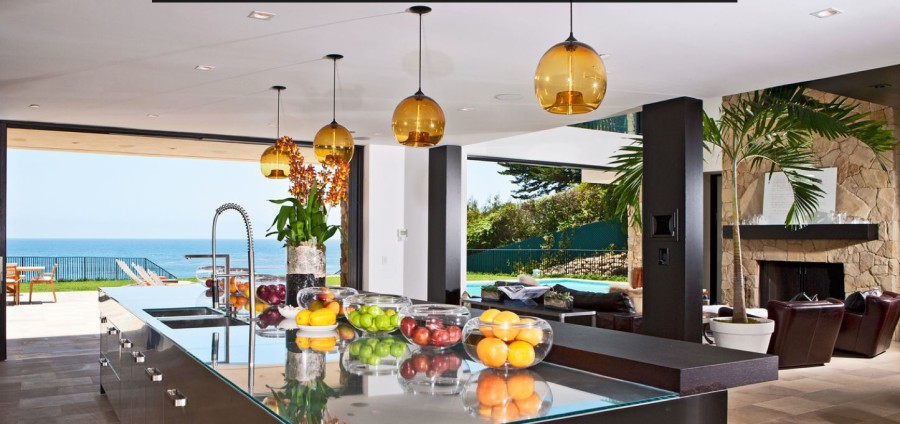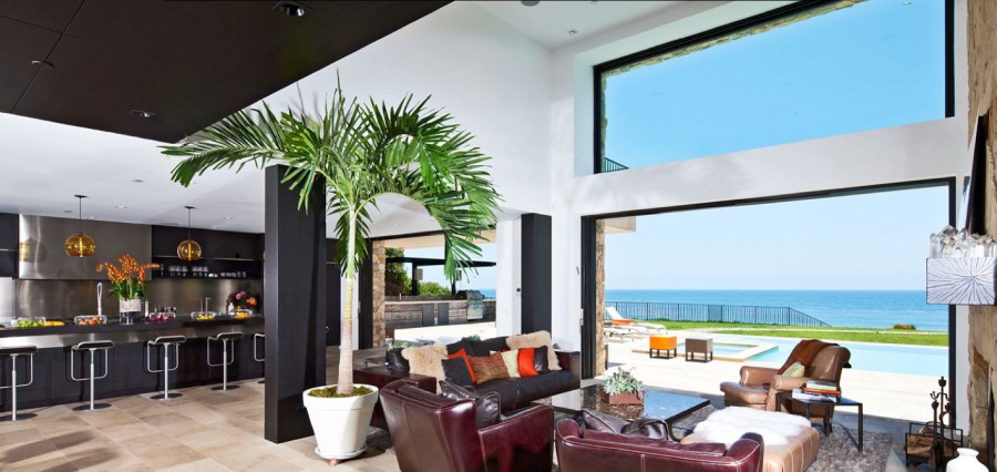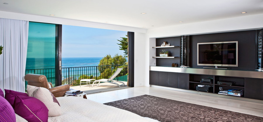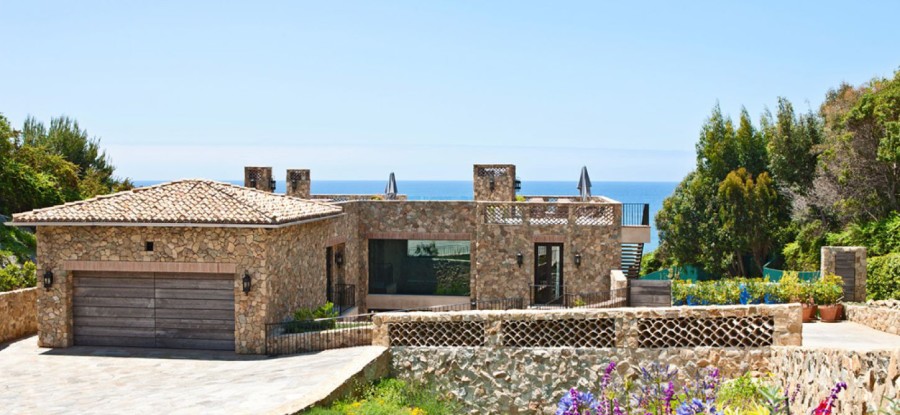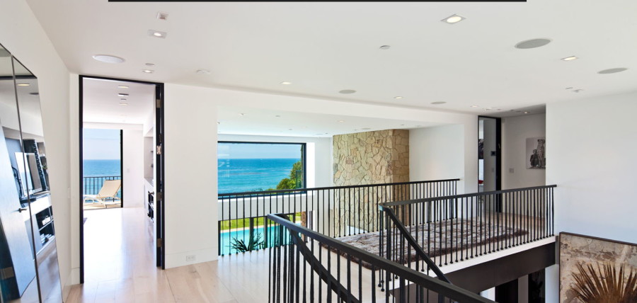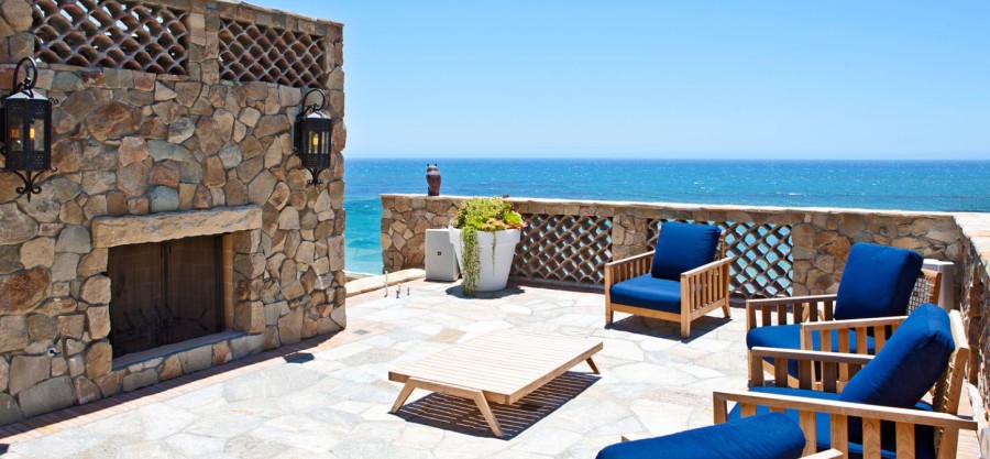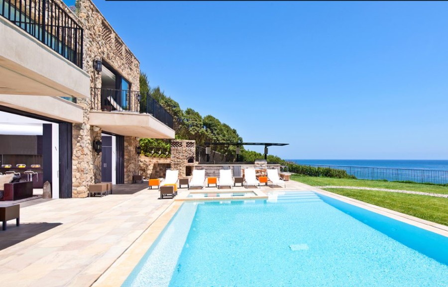 This private architectural estate sits on a a grassy lawn just steps above a sandy beach with 180 degree ocean views! A lush oasis is yours with winding stone pathways, terraced gardens, expansive grounds, infinity pool and spa. Walls of glass and stone adorn the warm richly appointed home with 4 bedrooms and 4 1/2 baths. Huge entertaining areas, billiard room and 2 master suites with fireplaces and terraces. Private and gated with unparalleled panoramic views.